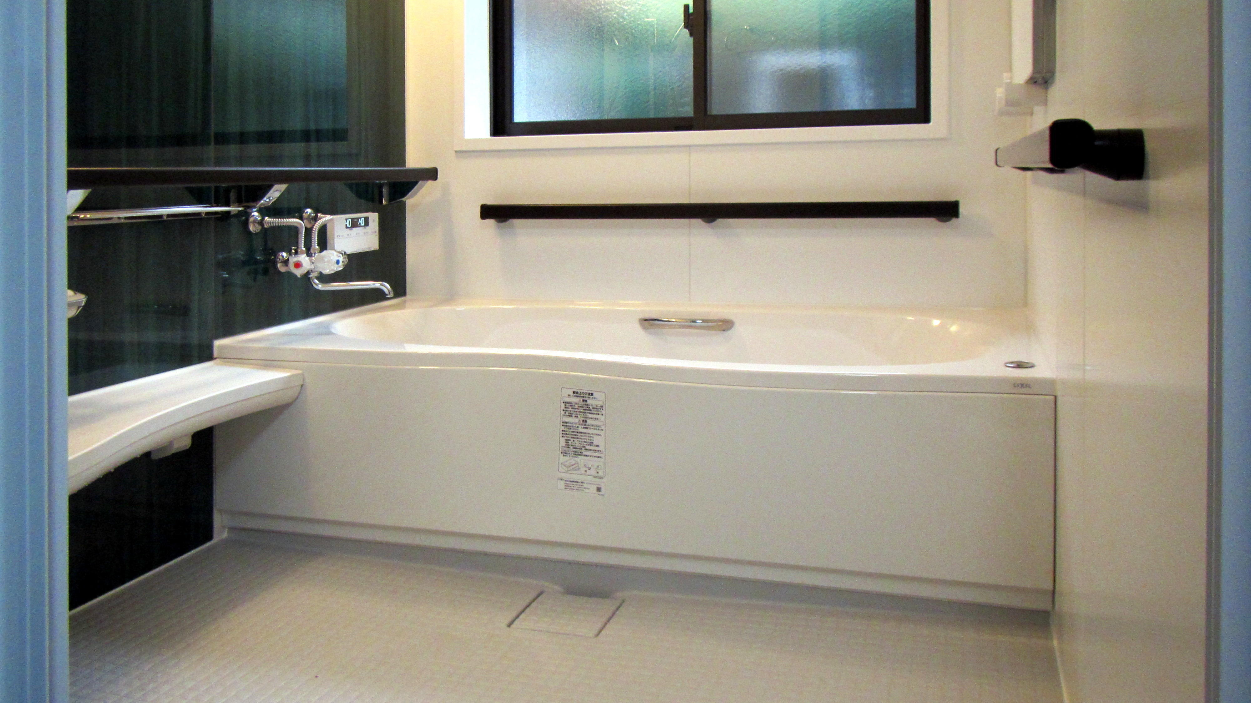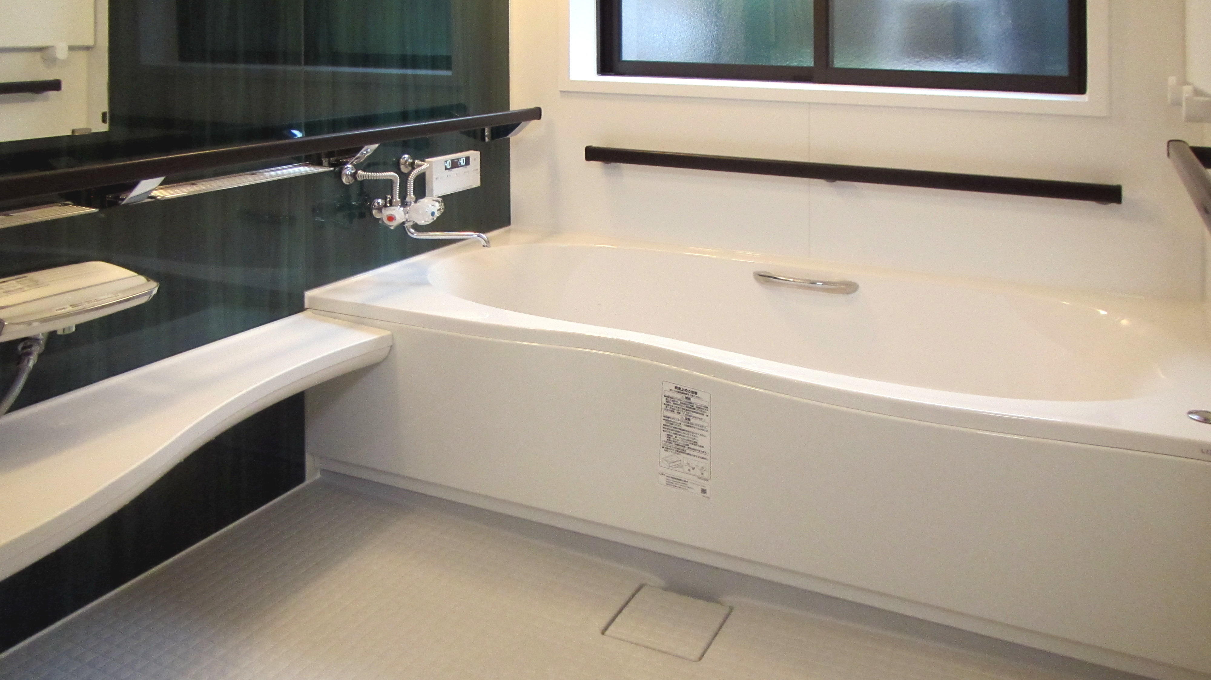 経年劣化もみられたお風呂をひろびろリニューアル!今回、増築工事もしたので1.25坪のゆとりある浴室空間となりました!全面サポートバー付きの最新バスルームなので安心してお風呂の時間をたのしめます。