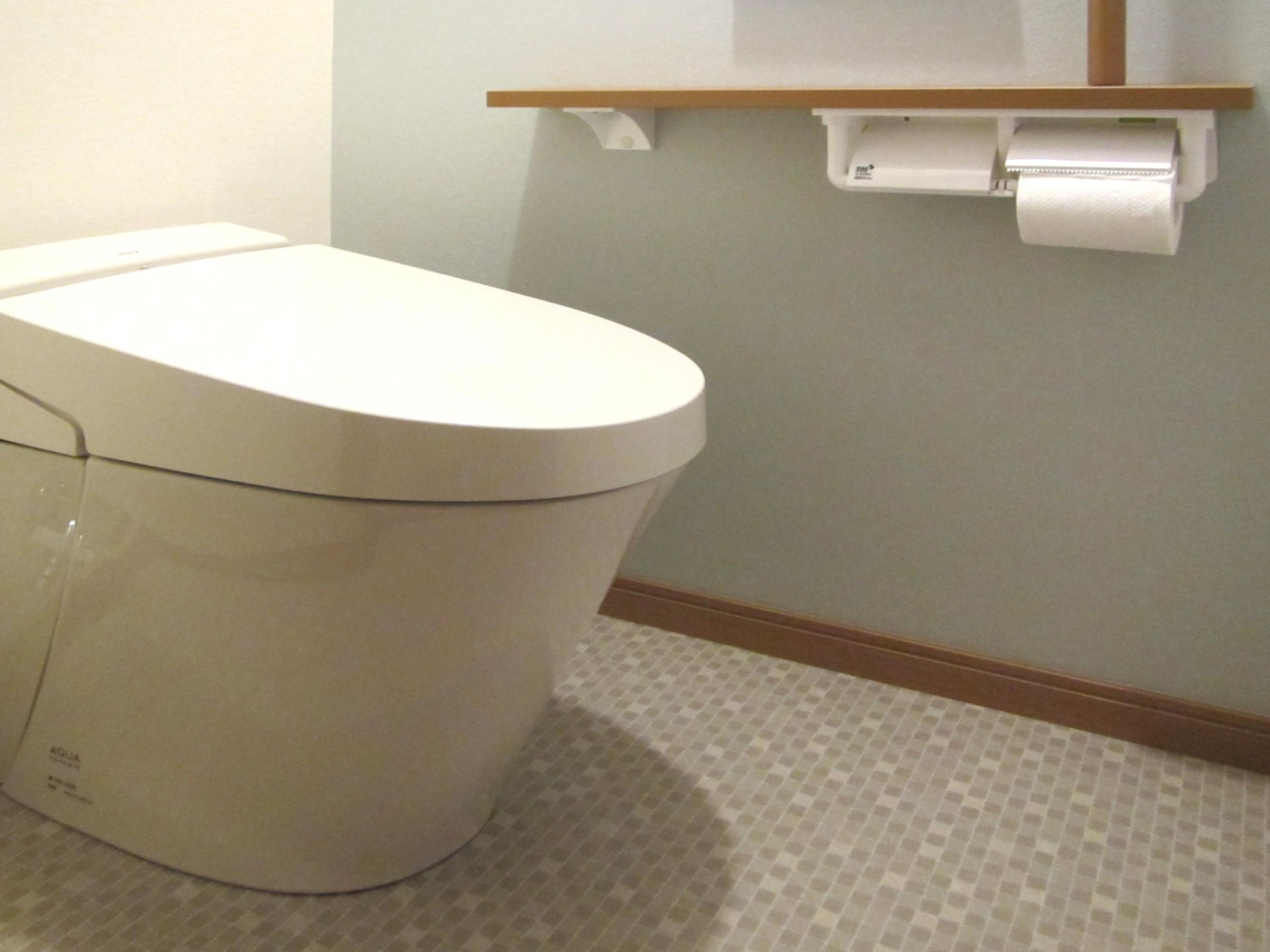 トイレもですが、空間全体がきれいになり良かったです。とくに床のモザイクタイル模様のクッションフロアが気に入っています。