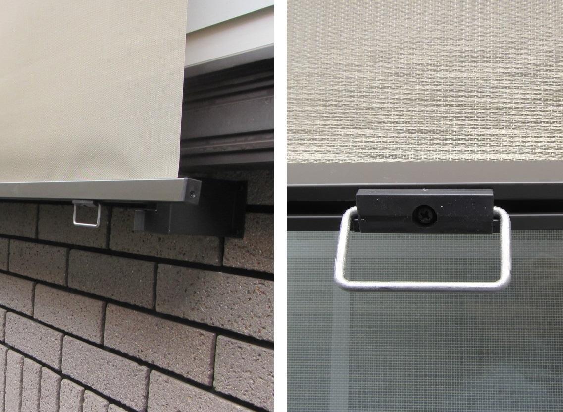 シェードを下ろす時は、ボトムバーに付いているヒモをまずは引っ張って下げます。収納する時は、ボトムバーをフックから外すと自動的に上がっていき、最後はゆっくりとボックスに入っていきます。