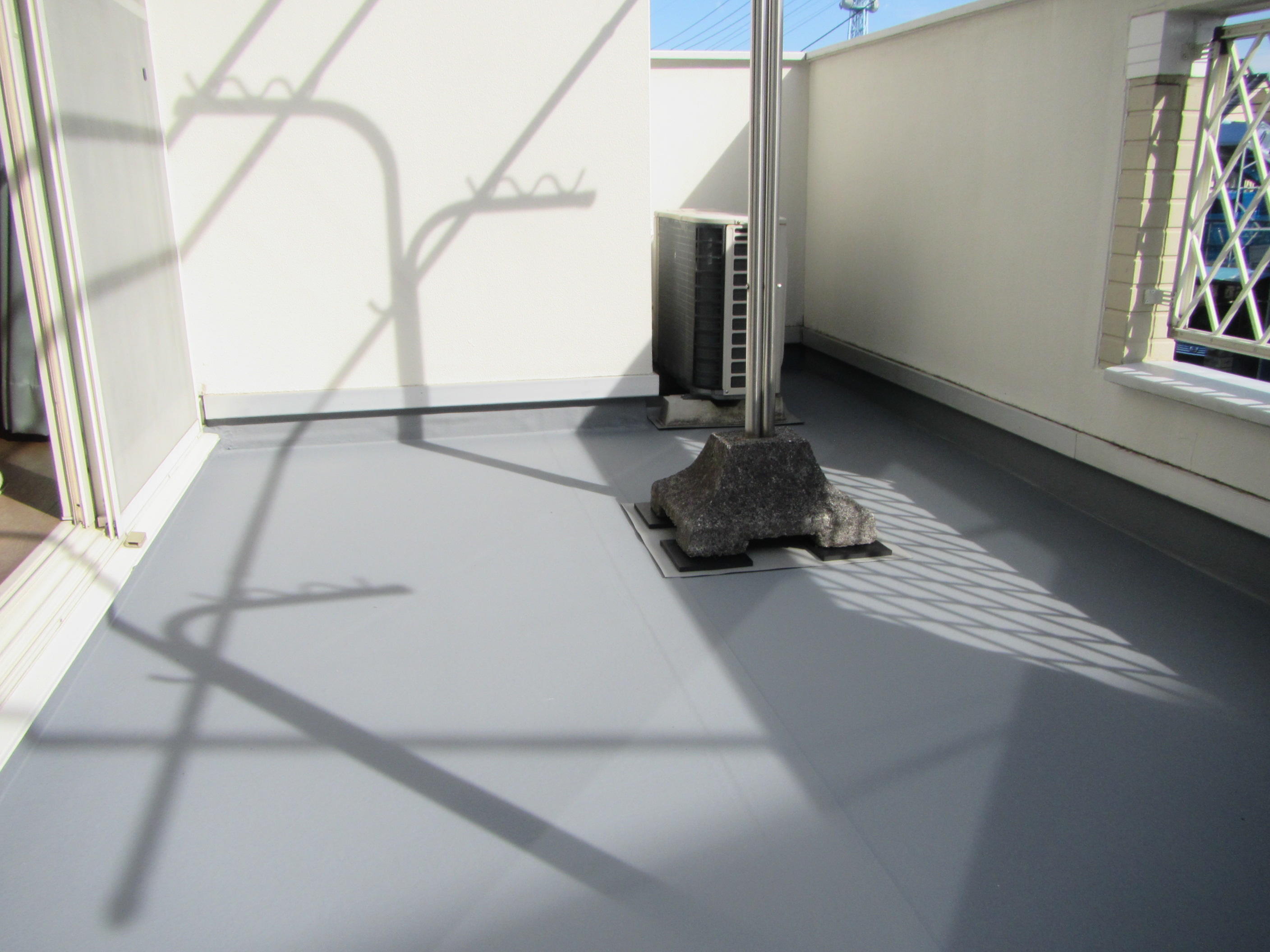 2ヶ所のベランダを一度に防水工事しましたが、お天気に恵まれ予定通り工期3日で終えられました。天候によっては順延することもありますのでご了承ください。