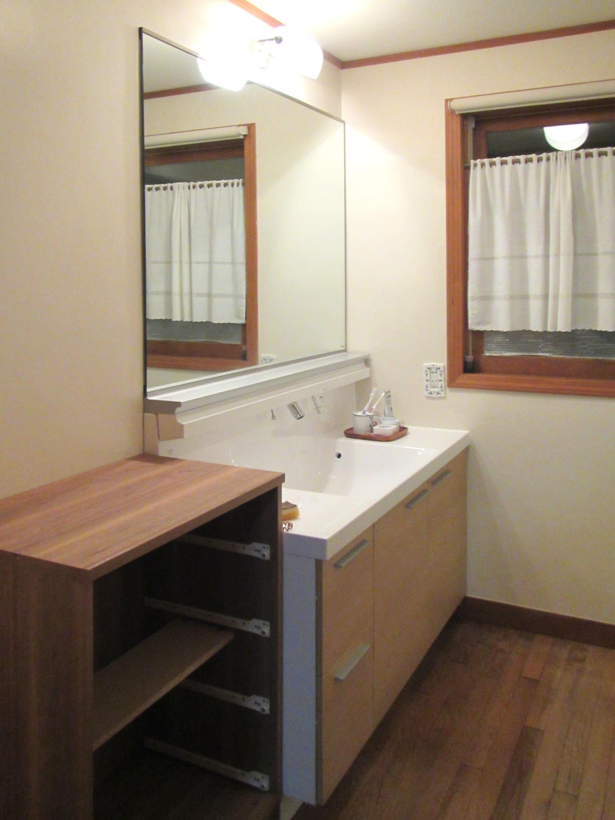 タイルの浴室は寒かったですが、今はすぐに体が温まって熱いくらいです。洗面台も、もともと使っていた鏡がまた使えて良かったです。