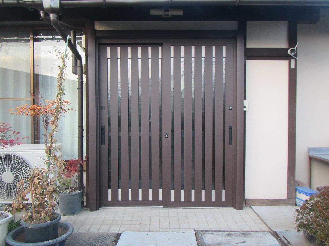 今回のリフォームは高齢のお母様のご要望で、家の防犯をしっかりしたいとゆう思いからスタートしました!玄関は太い縦格子でガラス面積が狭いタイプです。見た目も重厚感があって和風のお宅にピッタリです。 ファサードは初めは伸縮門扉のみでしたが、打ち合わせを重ねるうちに少し遊び心も入れたいととゆう事から機能門柱と枕木を追加しました! これで少しでもお母様が安心して暮らしていただける事を願います。