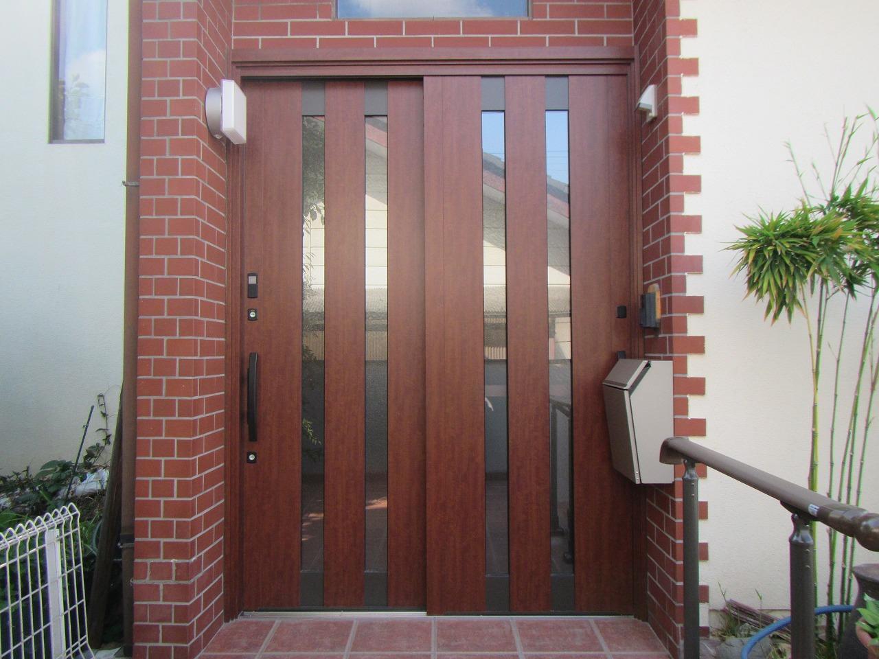 玄関サッシをリクシル『リシェント』でリニューアルしました!この際だからと階段・玄関ポーチのタイルも貼り替え、手すりも完備しました!