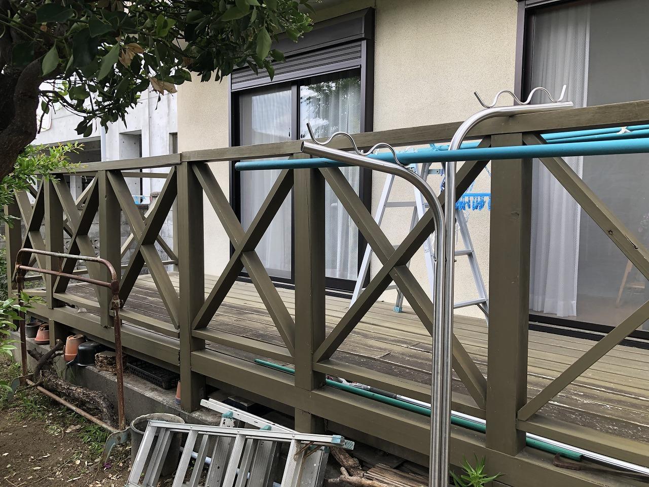 築20年経ったデッキの木に劣化が見られるようになってきました。LIXIL「樹ら楽ステージ」にを採用したので今後のメンテナンスも安心です。