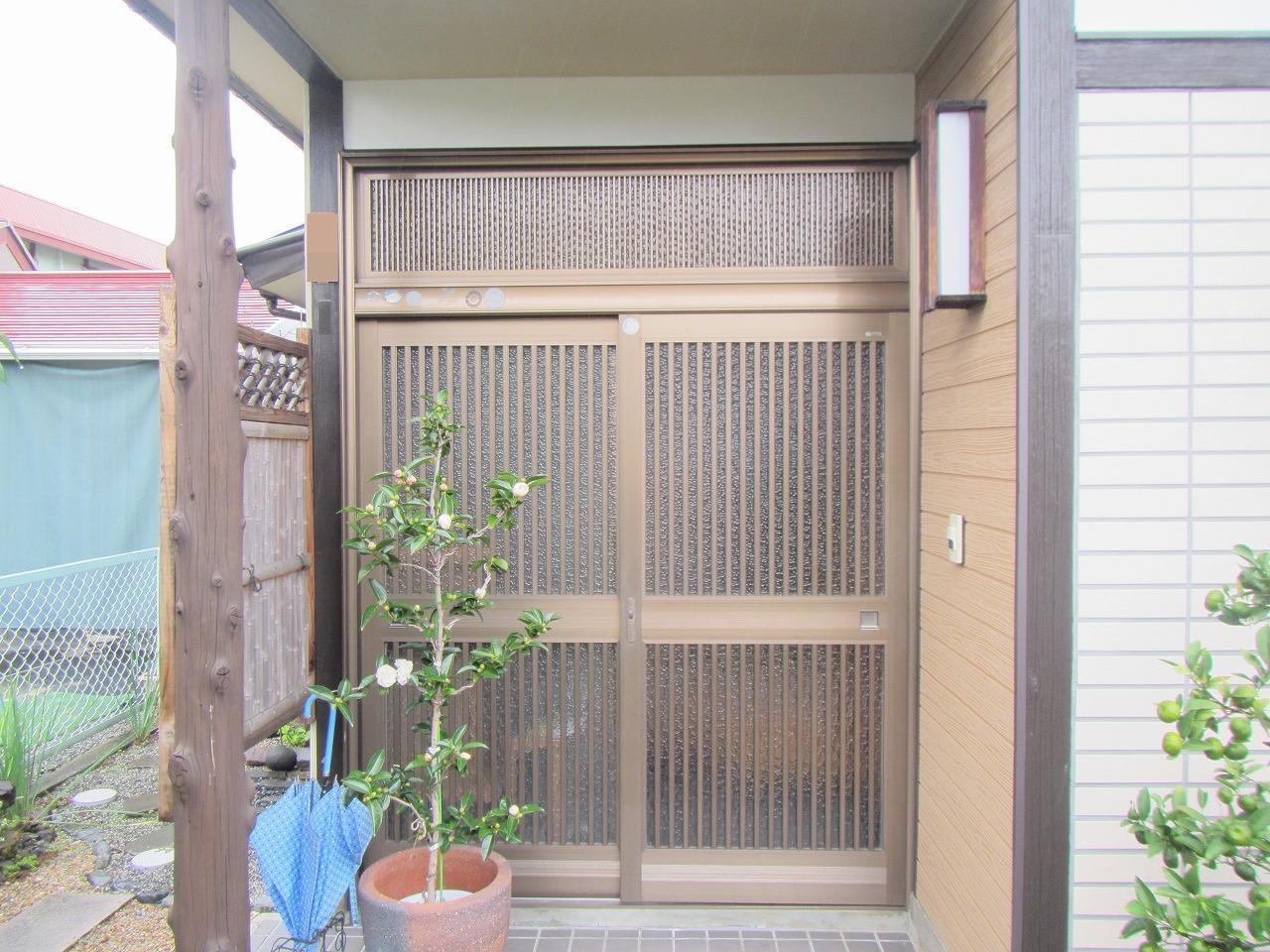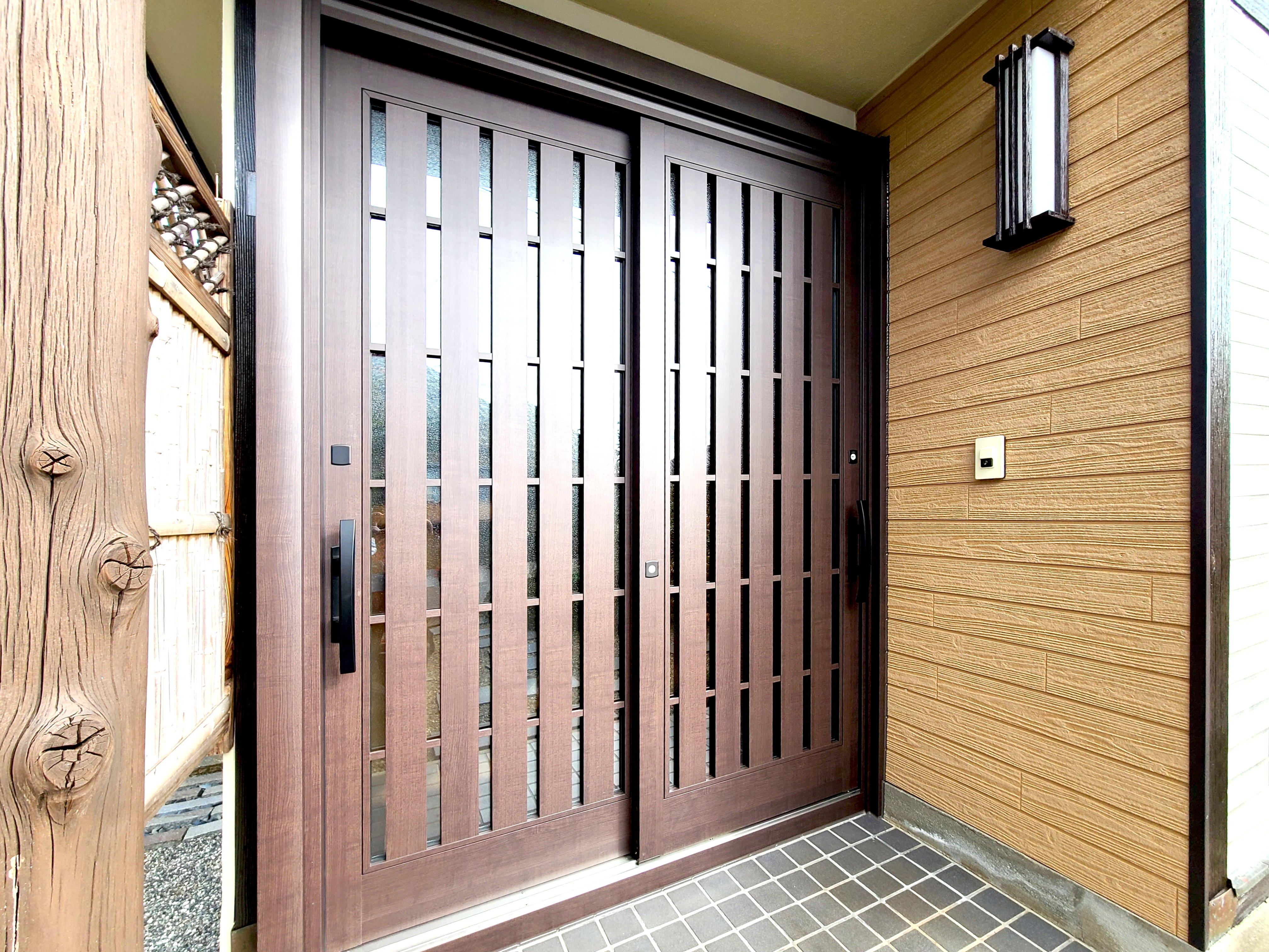 甲斐市で玄関引戸の取り替え工事が完了しました。 1日で仕上がる『リクシル リシェント引戸2』です。
