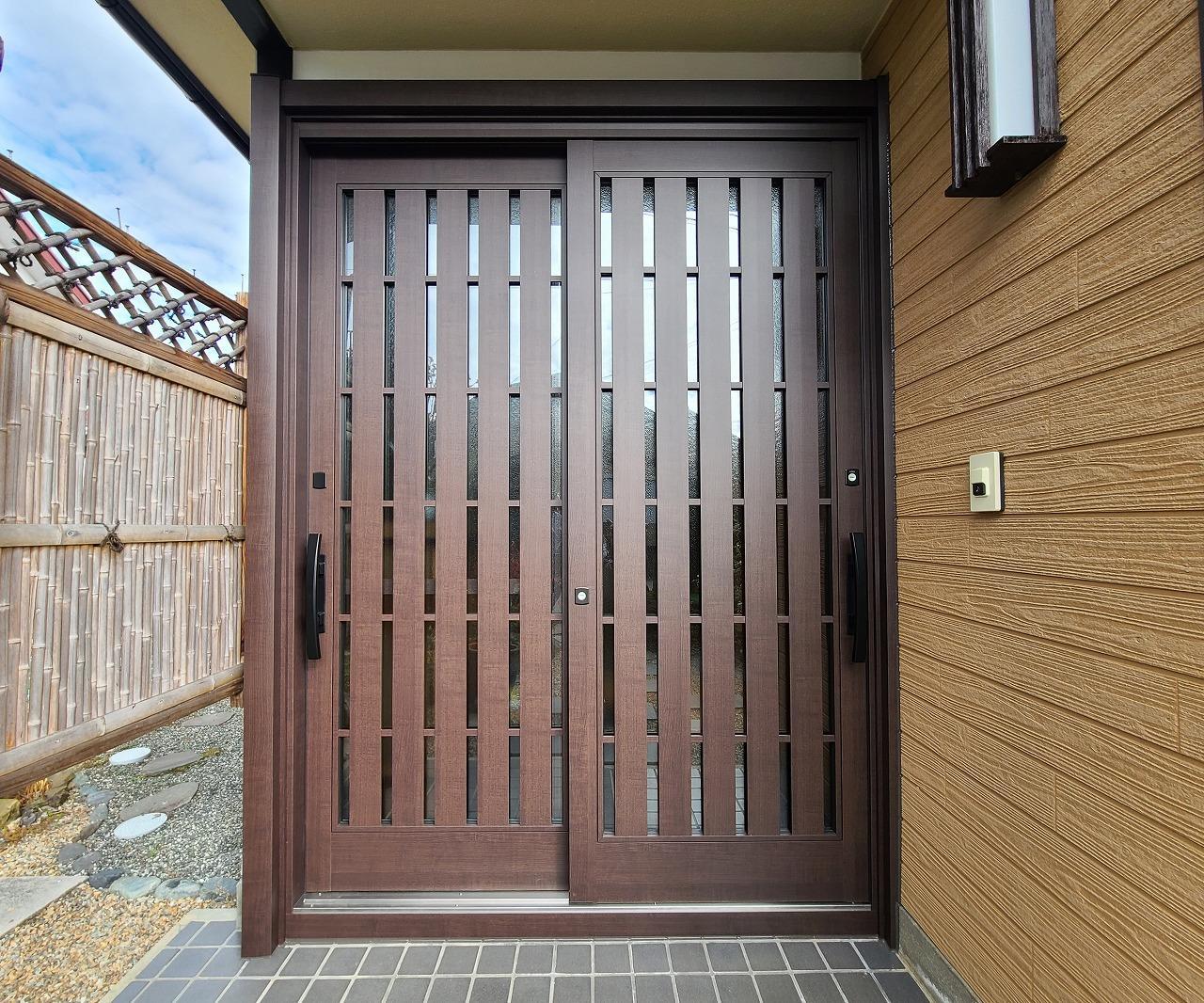 こちらのお客様はありがたい事に毎年の様にお仕事をいただいている方です。 以前させていただいた工事の定期点検のお電話の際にご相談をいただいて、玄関の工事をせていただく事になりました。 採用していただいた商品は断熱仕様となっており、デザインも重厚な木目で、玄関の高級感が格段にUPしました。 これから本格的な冬になる前にお宅が暖かくなったと思います。