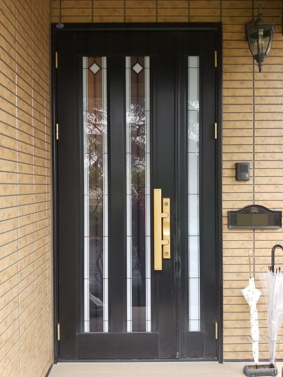 甲斐市で玄関ドアのリフォームが完成しました。 親子ドアをカバー工法『リシェント3』で1DAYリフォームしました!