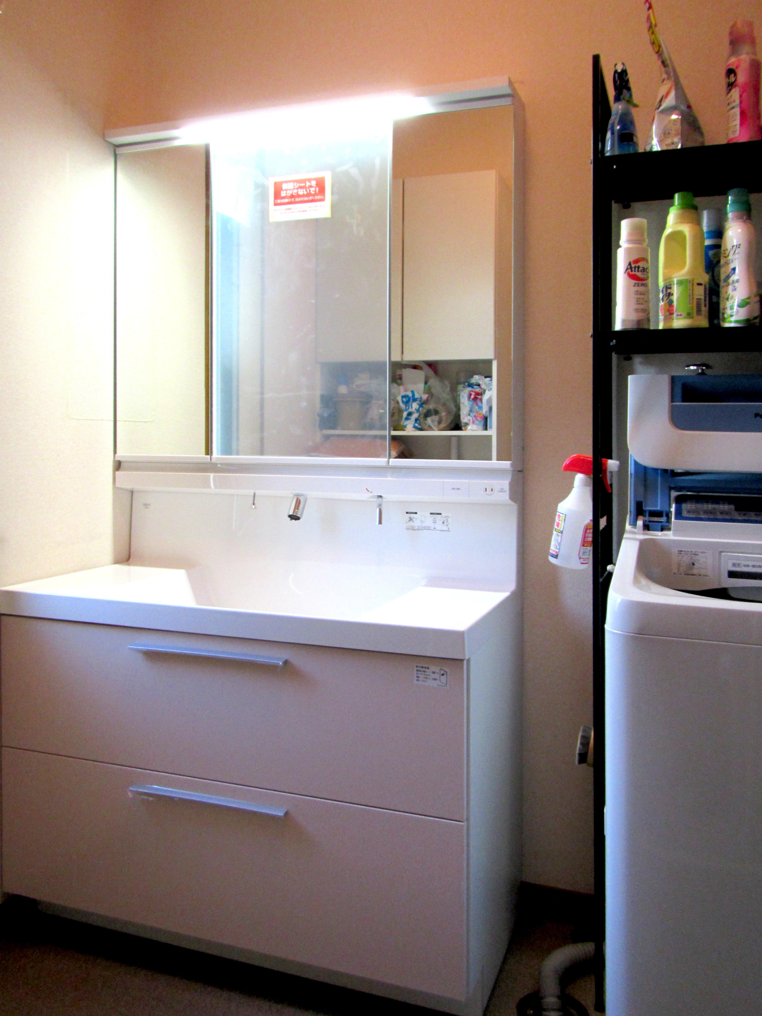 洗面化粧台がひろびろとスッキリして良かったです!扉の色も悩みましたがパステルピンクにして正解でした!