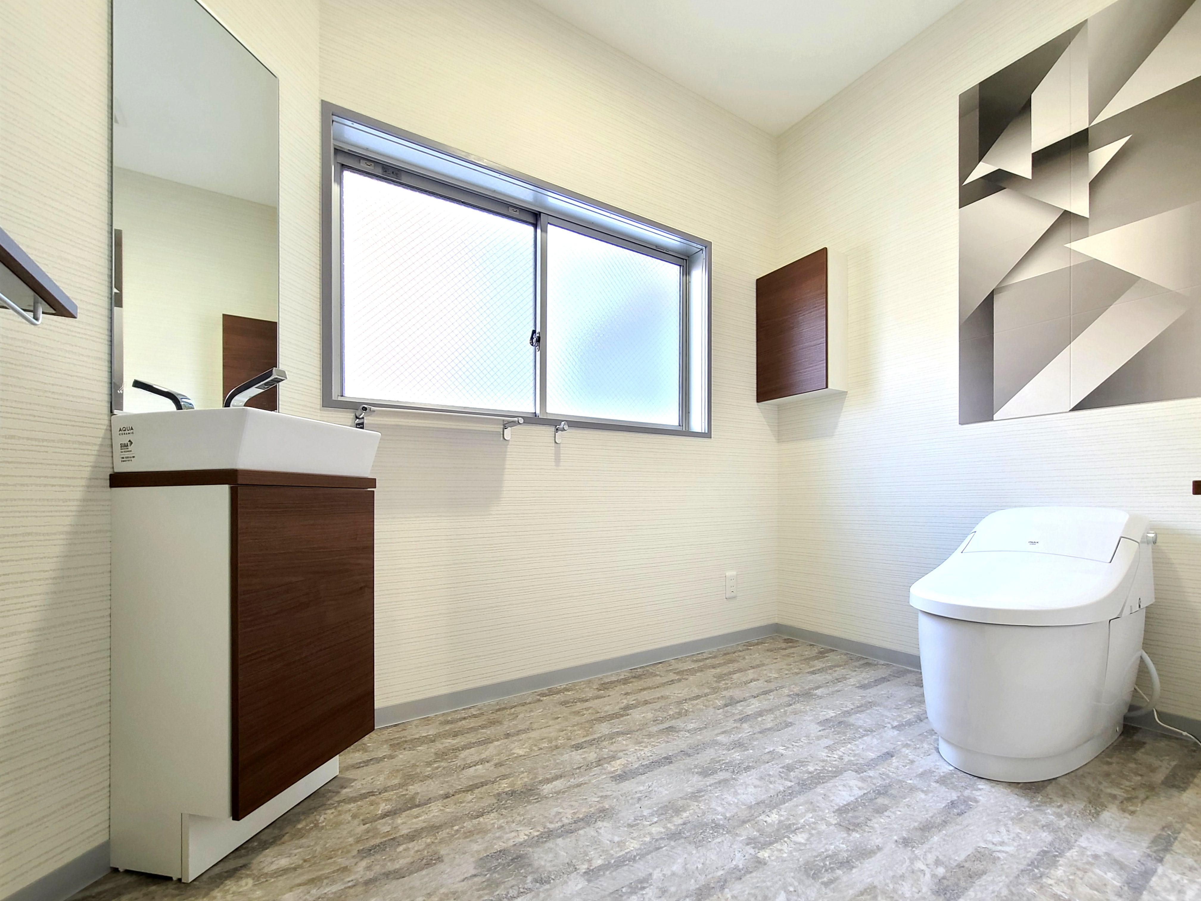 今回は事務所のトイレのリフォームです。もともとは男女兼用のトイレでしたが、女性スタッフが増えてきた為、女性専用トイレにリフォームしたいとご相談を受けました。 パーテーションを撤去して1つのトイレ空間にした為とても広いトイレになりました!またスタイリッシュかつ清潔感がある内装で『働く女性』を応援する様なトイレになったと思います。