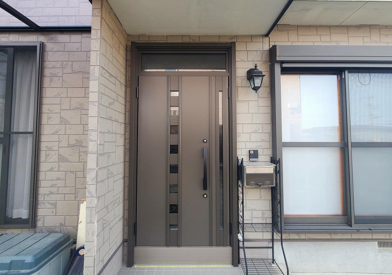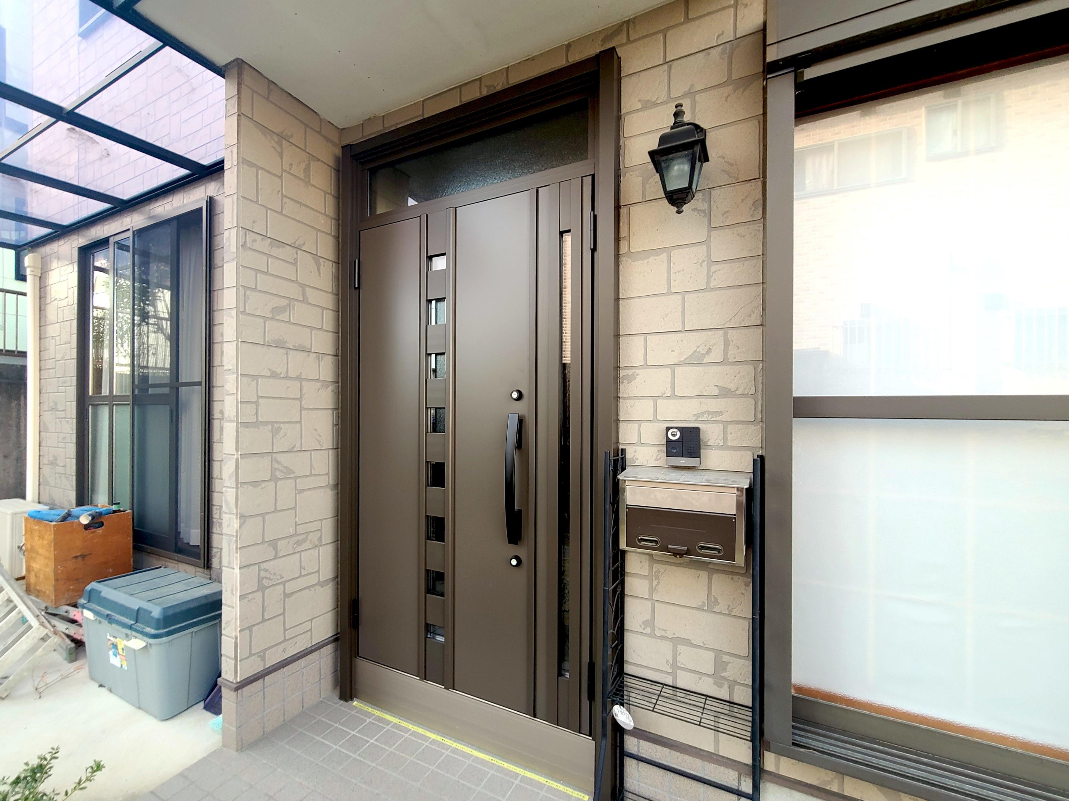 こちらのお客様はたまたま弊社の店舗を通りかかって来店していただきました。 玄関の鍵の調子が悪いのとデザイン性にも不満があったそうです。 『リクシル リシェント』の断熱仕様を採用していただき、もちろん工事は1日で終わりました!