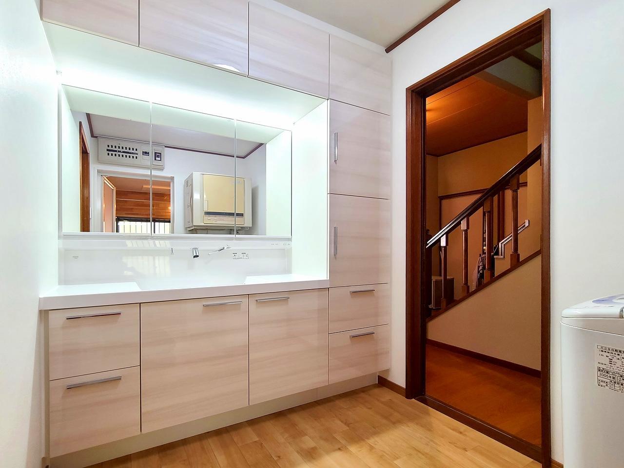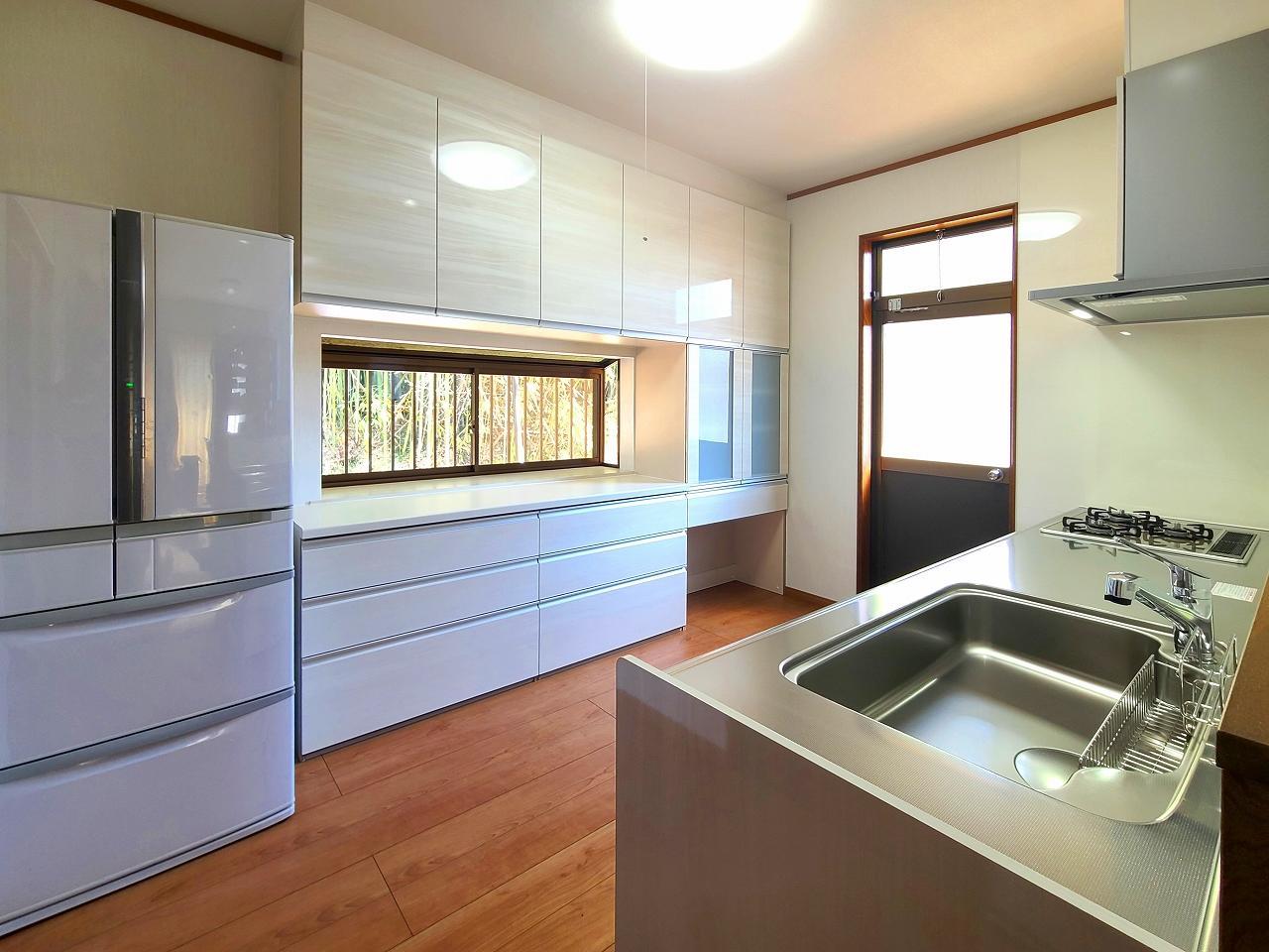 水まわり空間を収納量豊富な最新機器に一新しました。キッチンは奥様憧れの対面式とし、ダイニング空間との一体感が生まれ、玄関はリシェント引戸に交換し高級感ある仕上がりとなりました。どの部屋もとても心地よい空間です!