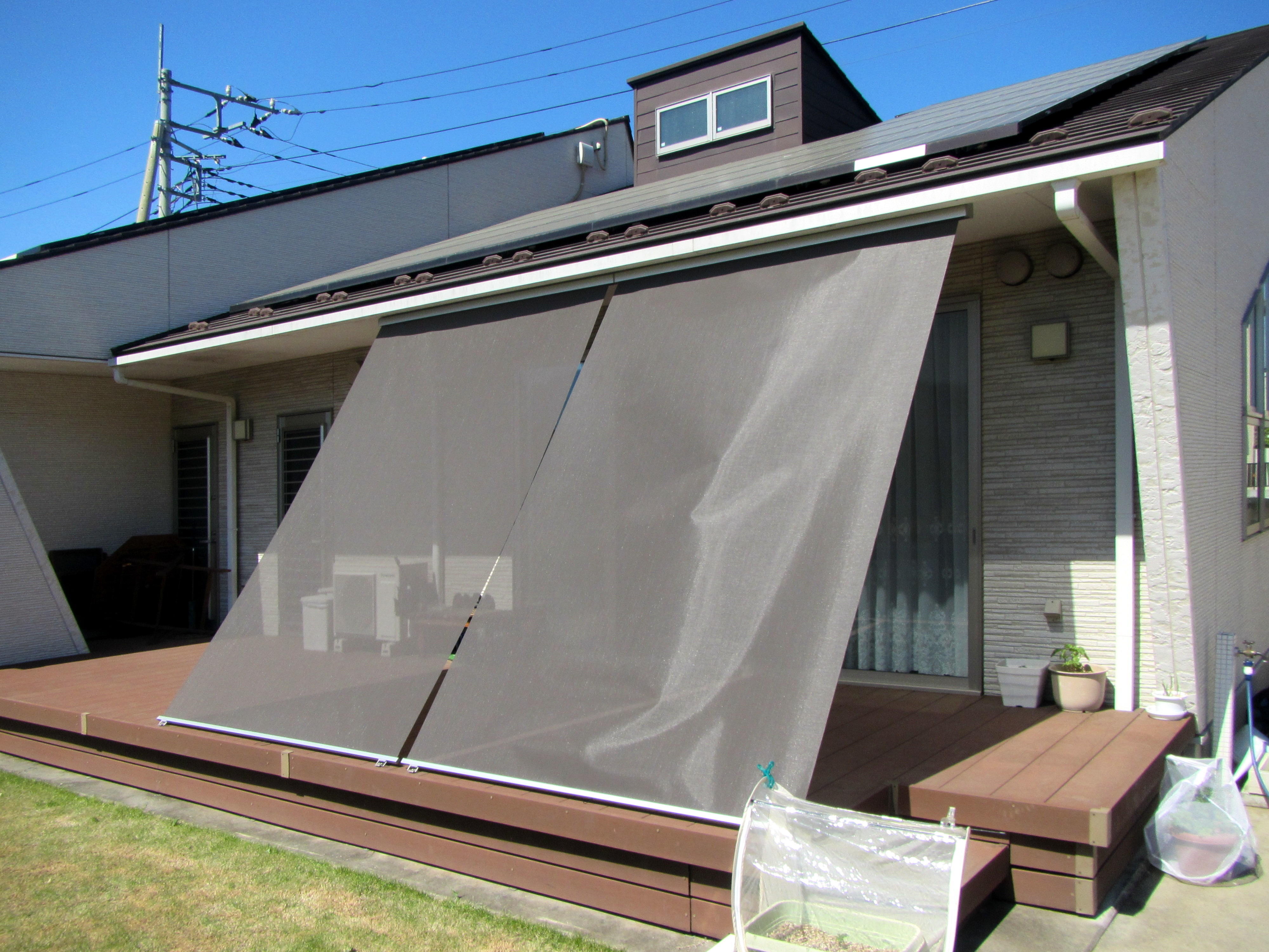 市川三郷町の日除けリフォームが完成しました。 毎年悩まされていた真夏の日差しをカットして暑さをすっきり。 今年は夏が来る前に快適な暮らしが出来るようLIXILのスタイルシェードを設置。