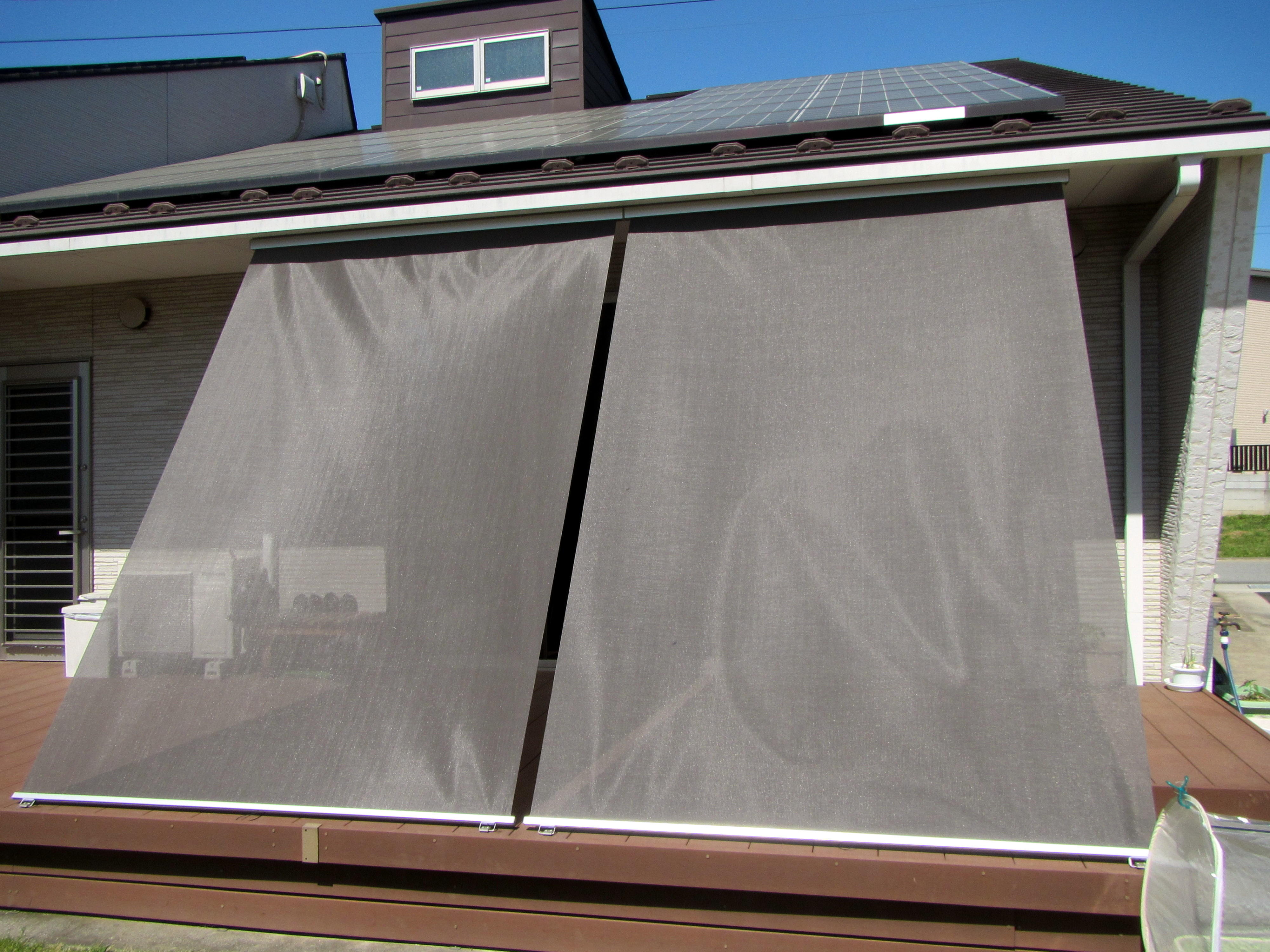 建物のアクセントになるようブラウン系の生地にしました。窓から空間があるため部屋の中も思ったより暗くならずとてもよかったです!夏、活用するのが楽しみです。ありがとうございました。