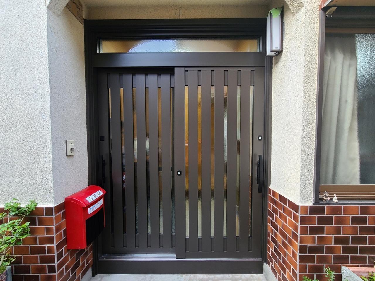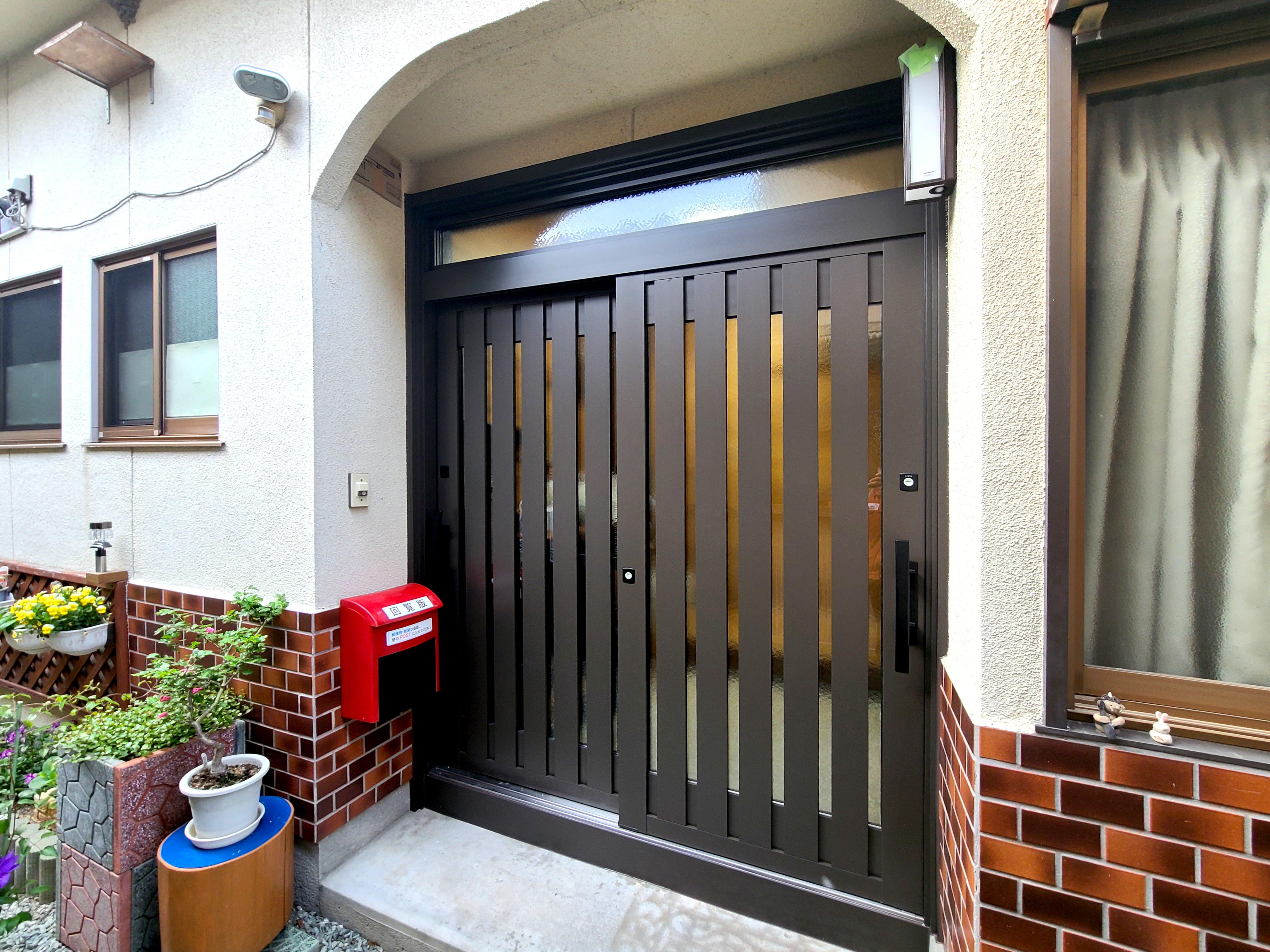 市川三郷町でリシェント玄関引戸を施工しました! 1日で工事が完成する優れものです。