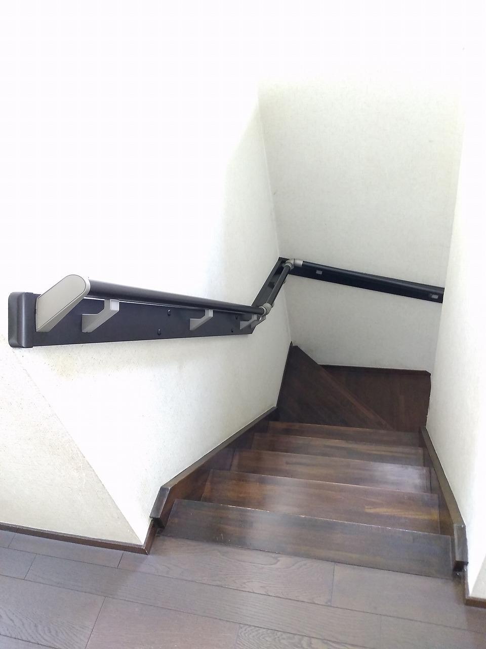 階段の手すりが上り始めにしかなかったため、2階に行く事も億劫になっていました。また、荷物があればなおさら危ない事になってしまいます。お施主様の高さに合わせて取り付けることで、日々の行き来がスムーズになり安心して過ごせると思います。