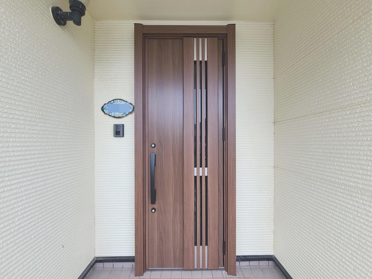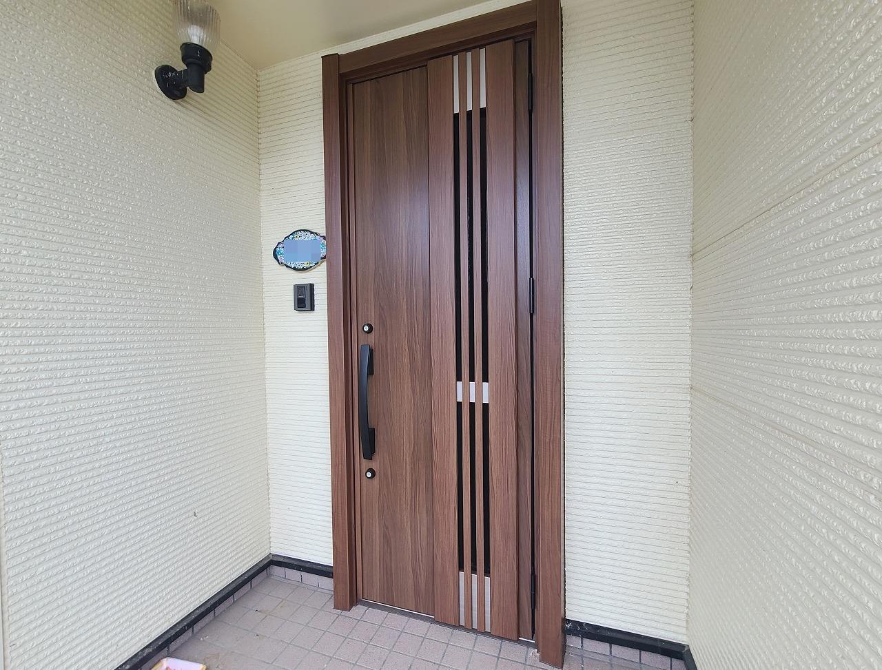 玄関ドアをカバー工法『リシェント 断熱タイプ』にリフォームしました! 和室の木製障子は内窓の『インプラス 和紙調組子付き』で和室の雰囲気にもマッチしています!