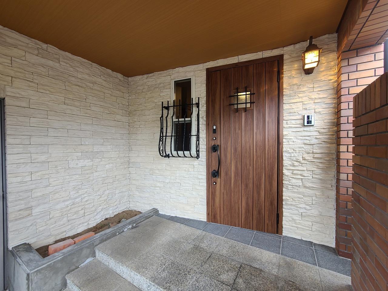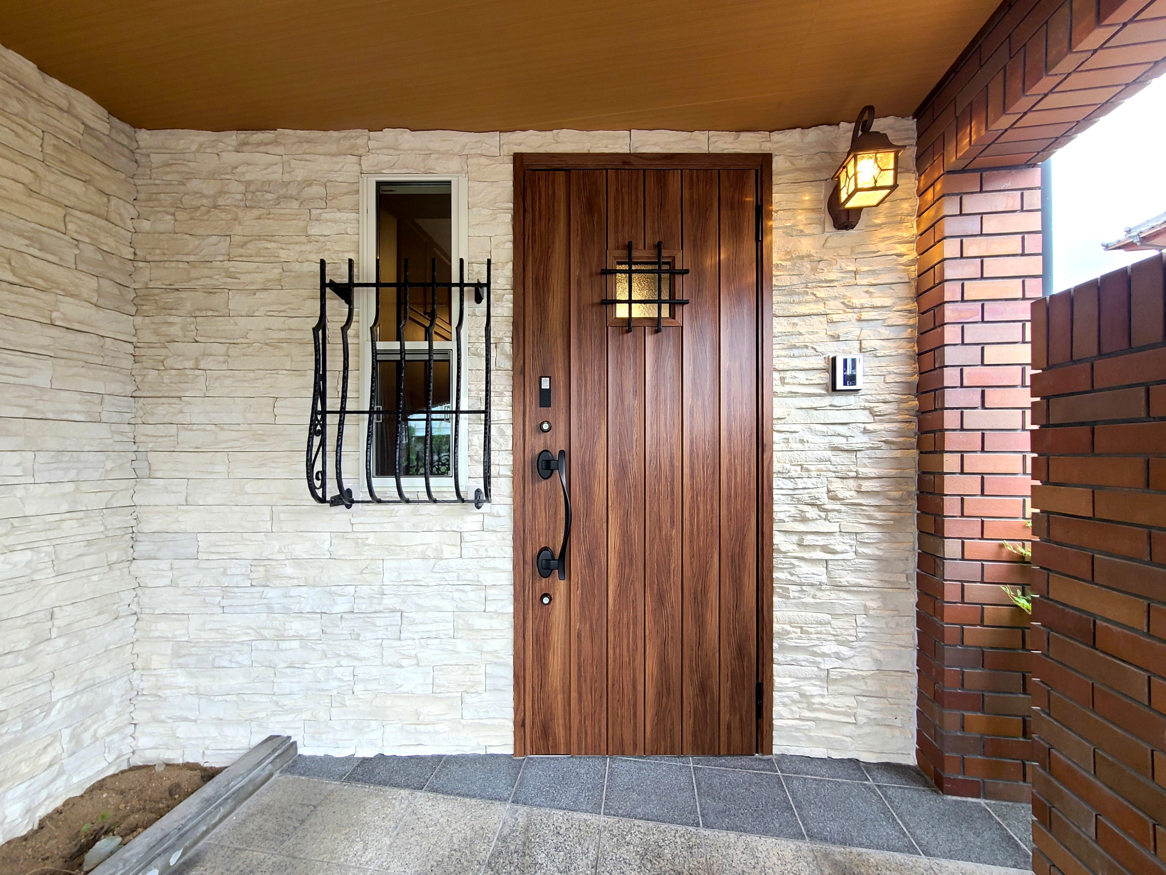 始めは玄関正面部分の提案から始まりました。 施主様のお話しをお伺いしていくと、このように本物の質感とのコラボレーションになり、私共もお住まいのイメージに合うリフォームとなりました。ご満足いただけて誠に嬉しいです。 ありがとうございました。