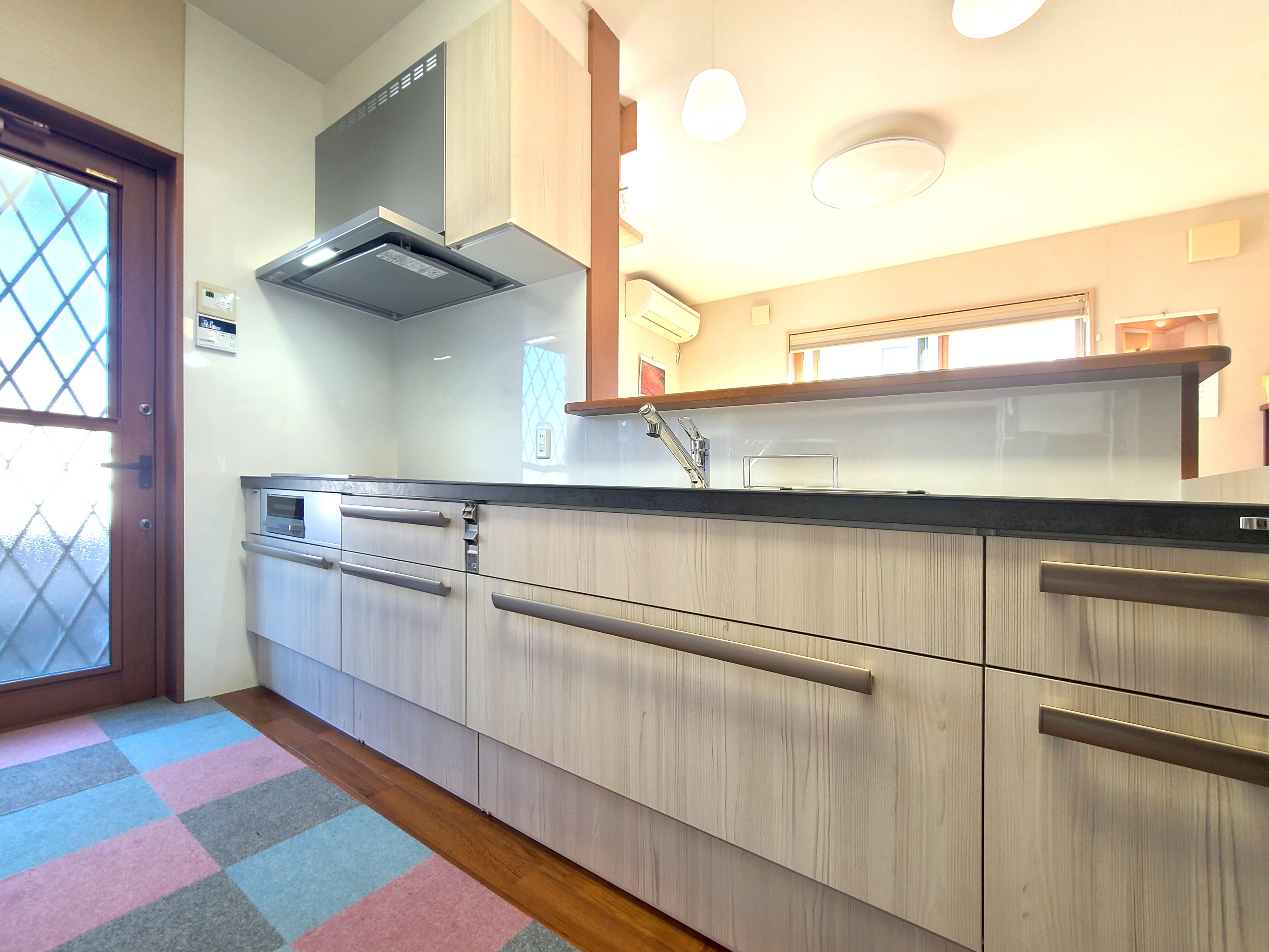 当初は、IHヒーターとレンジフードのみの交換で考えてましたが、現在使用しているキッチンの人造大理石天板がたわんでいることが発覚しました。それをきっかけにLIXILショールームへ足を運んでいただき、【システムキッチン リシェルSI】を気に入っていただいたのでキッチンまるごとリフォームとなりました!新しいシステムキッチンは熱やキズ、汚れにも強いセラミックトップ天板にし、いつまでも頼れる強さと美しさを備えた調理空間となりました。