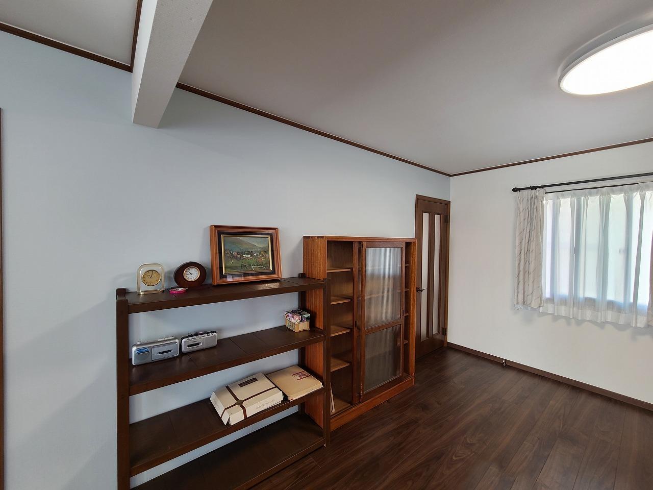 2階洋間の床はカーペットからフローリングに変更して、壁・天井のクロスを貼替えました。