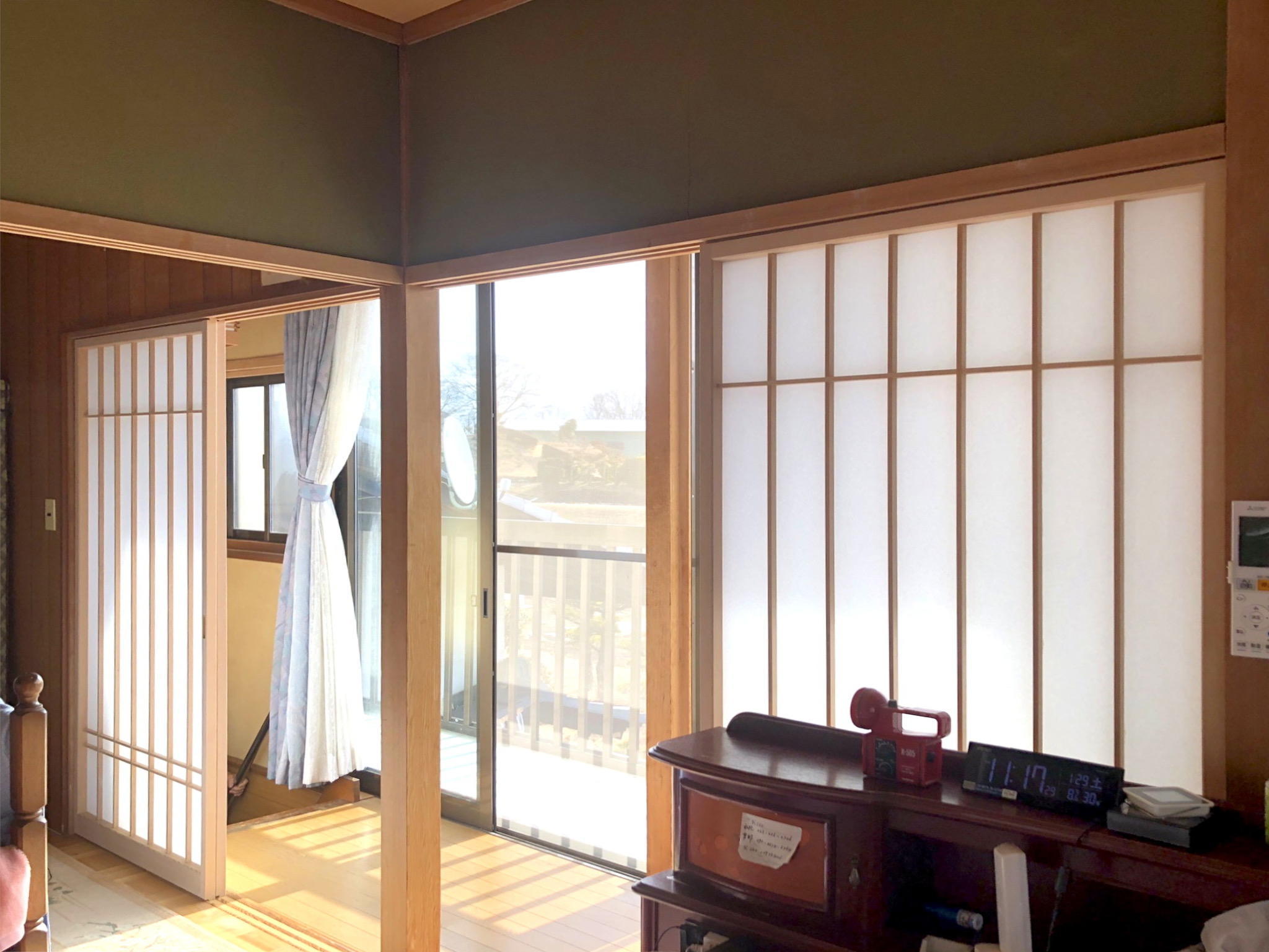 寝室の障子なのでガラスが割れたときに心配というご相談をいただいたのがきっかけでした。そして障子紙の張替えも面倒とのことからワーロン紙をご提案させていただきました。障子のデザイン性もよく、お部屋の雰囲気もリニューアルできました。