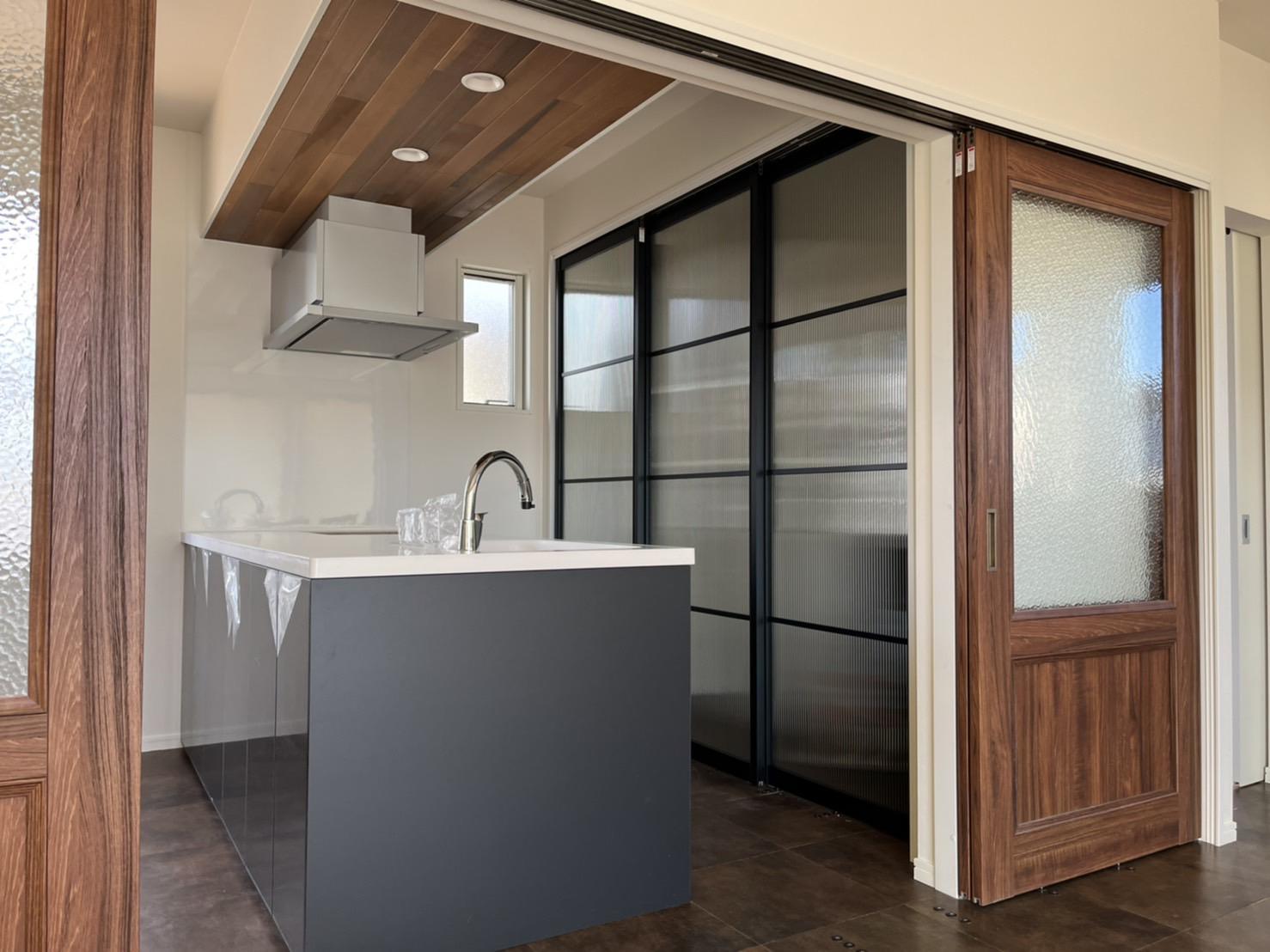 特寸サイズの建具は解放感もありますが、高級感も出るみたいでスタッフにも高評価でした。物入の建具もスケルトンタイプの建具にしたので透明感があって良かったです。キッチンの天井に杉板を貼りましたがとても素敵なので全体に貼ろうかなと考え中です。