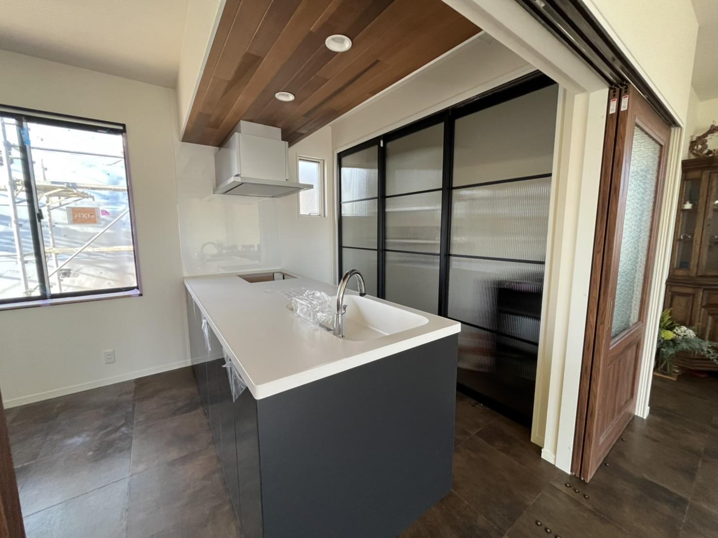 今回のリフォームでは壁を解体して、オープンな対面式のキッチンに交換しました。