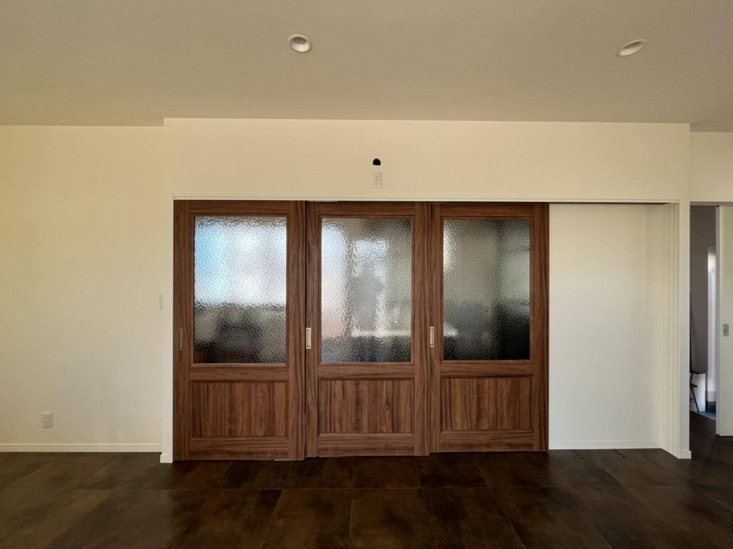 スタジオ側とキッチンを仕切る扉は特寸サイズの3枚引戸を取り付けましたので開けるととても解放感があります。