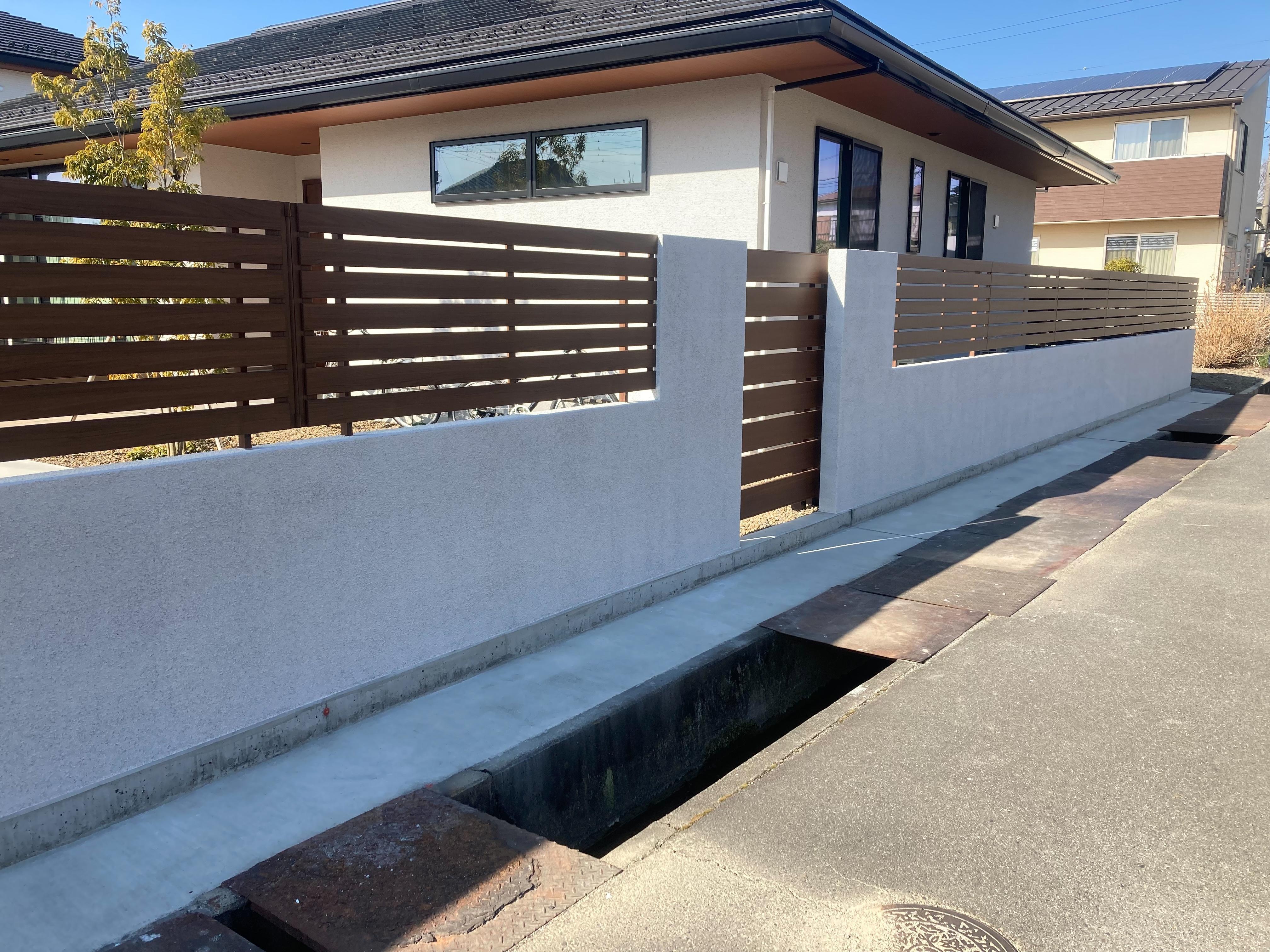 甲斐市の外構工事が完成しました。 新築を建てられたお客様からのご依頼です。 建物に合わせた塀とフェンスで 敷地と建物に一体感ができました。