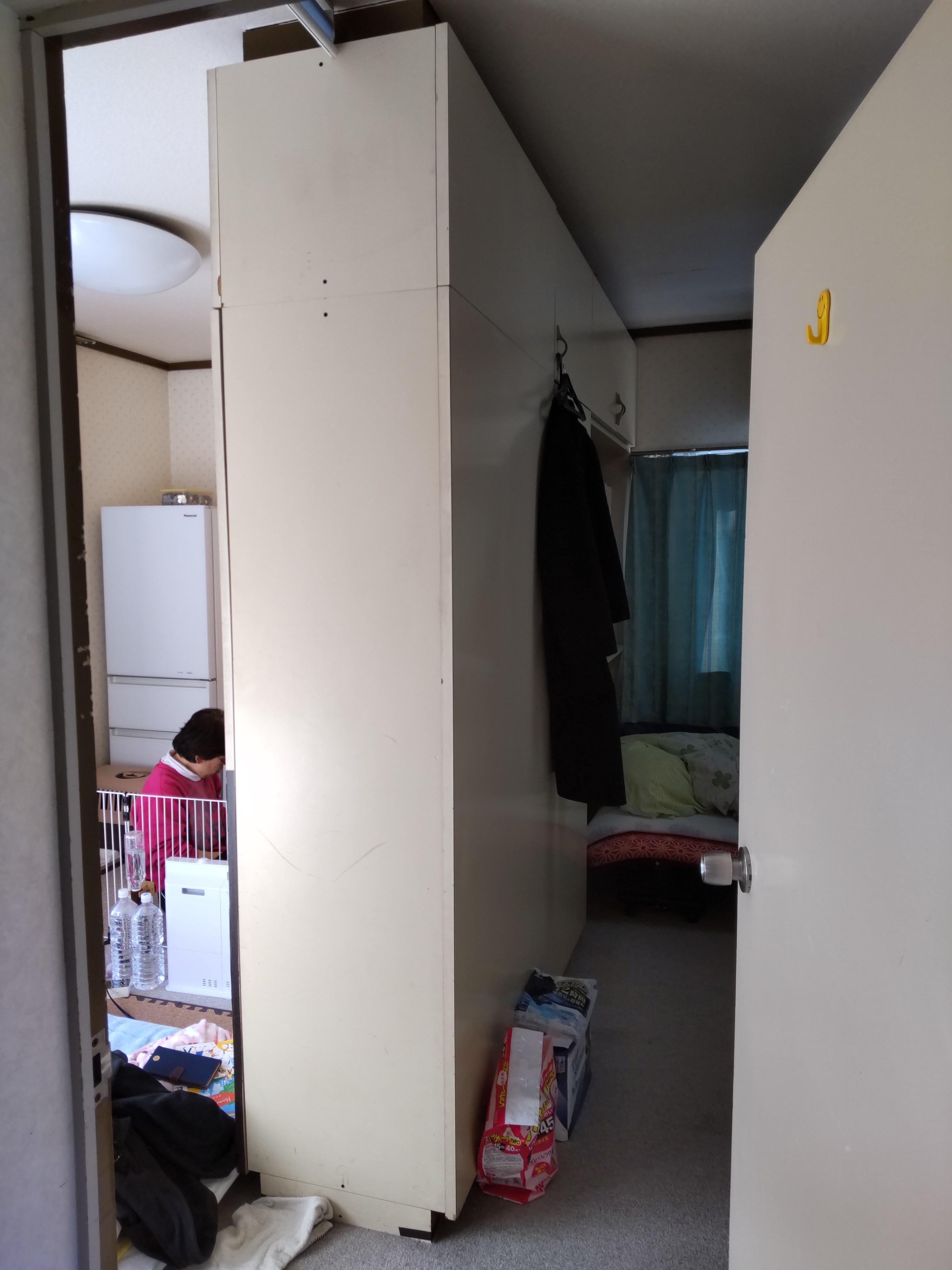 先日、隣の部屋のカーペットを貼替え後相談を受けました。部屋の間仕切り用の収納ボックスを撤去されたいと依頼がありました。