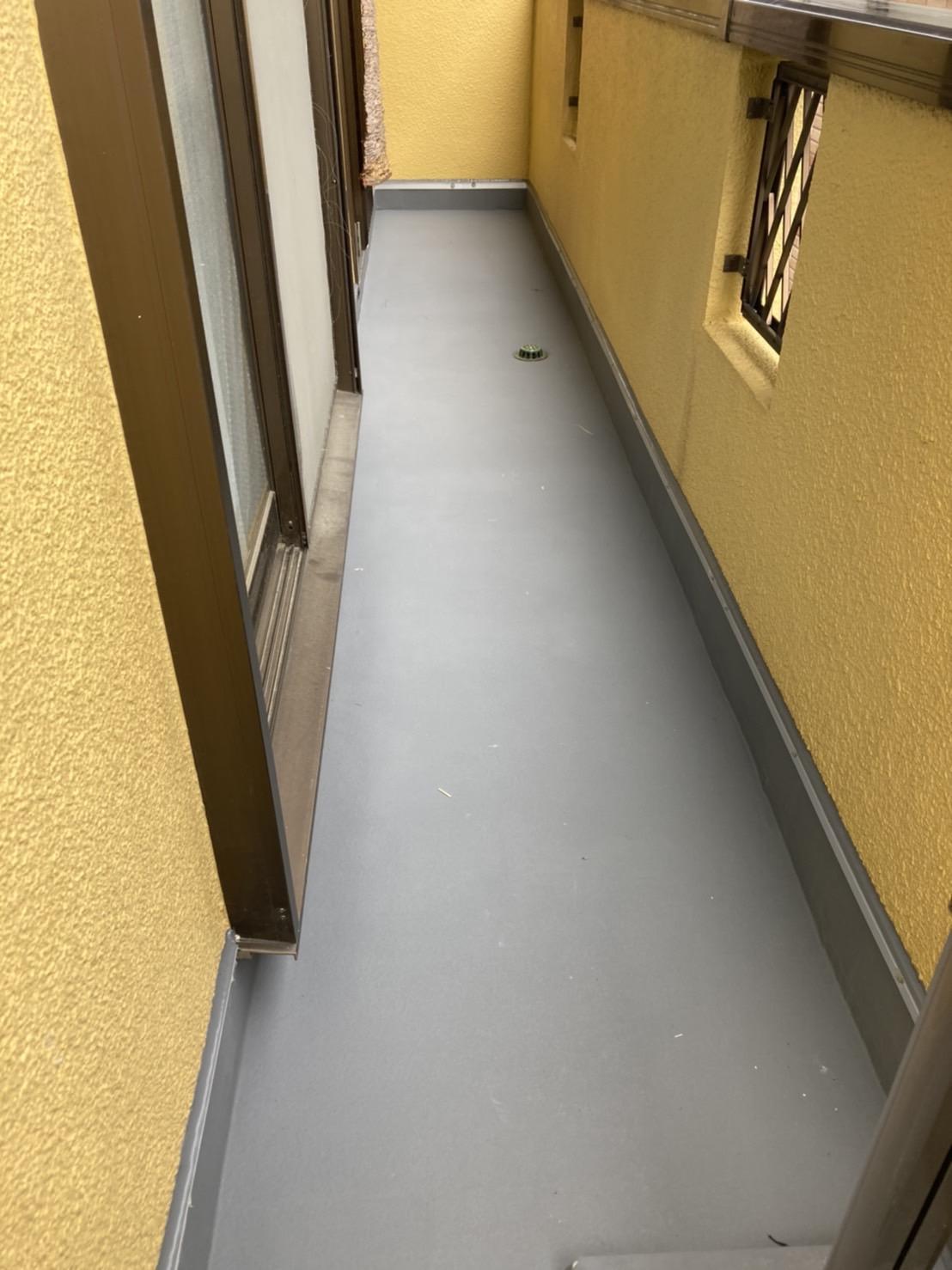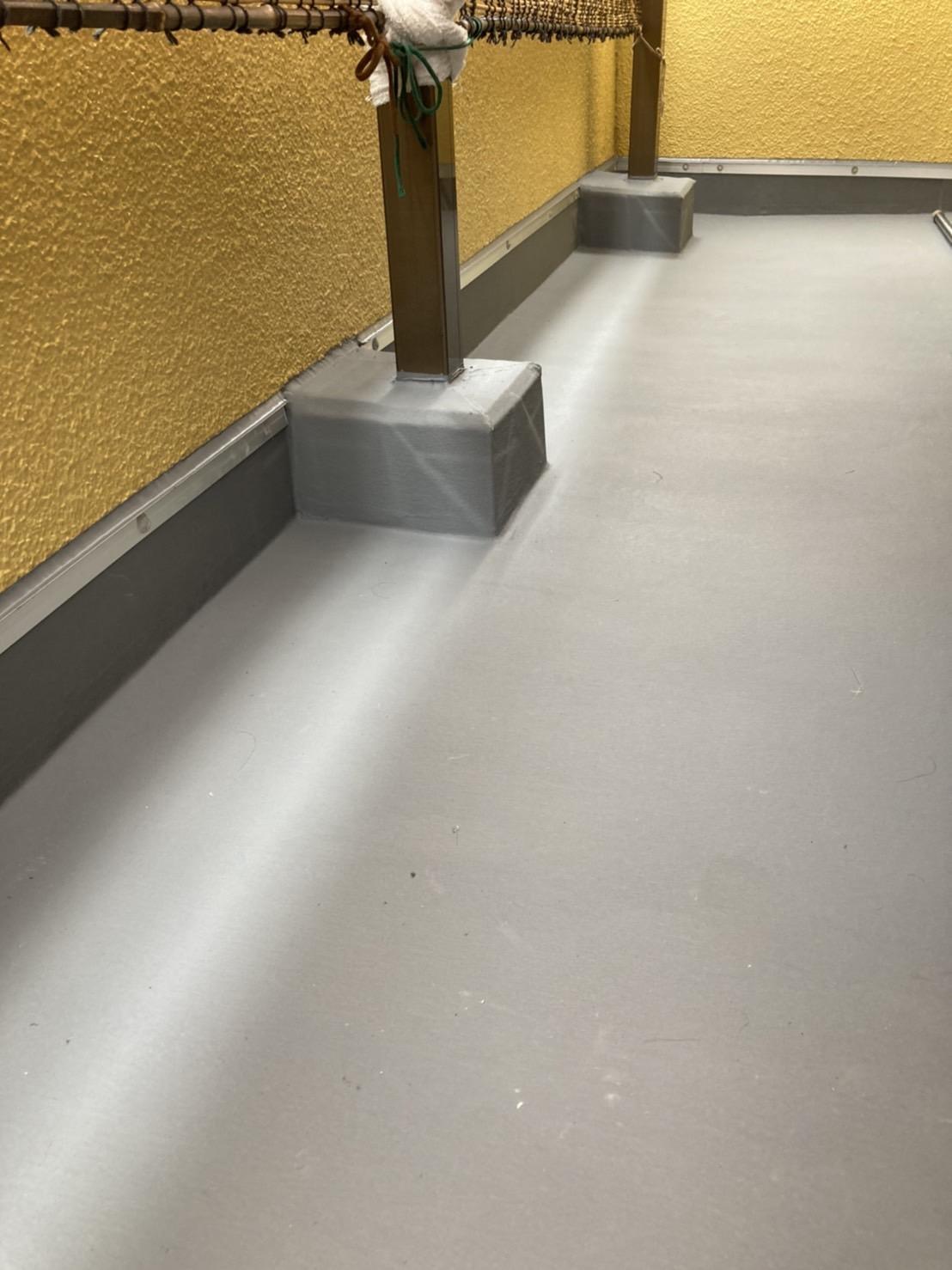 甲斐市でバルコニー防水工事が完成いたしました。 経年劣化でヒビが入り、防水の塗膜も剥がれてきてしまい 雨の日は水たまりができ、建物の心配をされご相談をお受けしました。 ひと目で、安心できる仕上がりになりました。