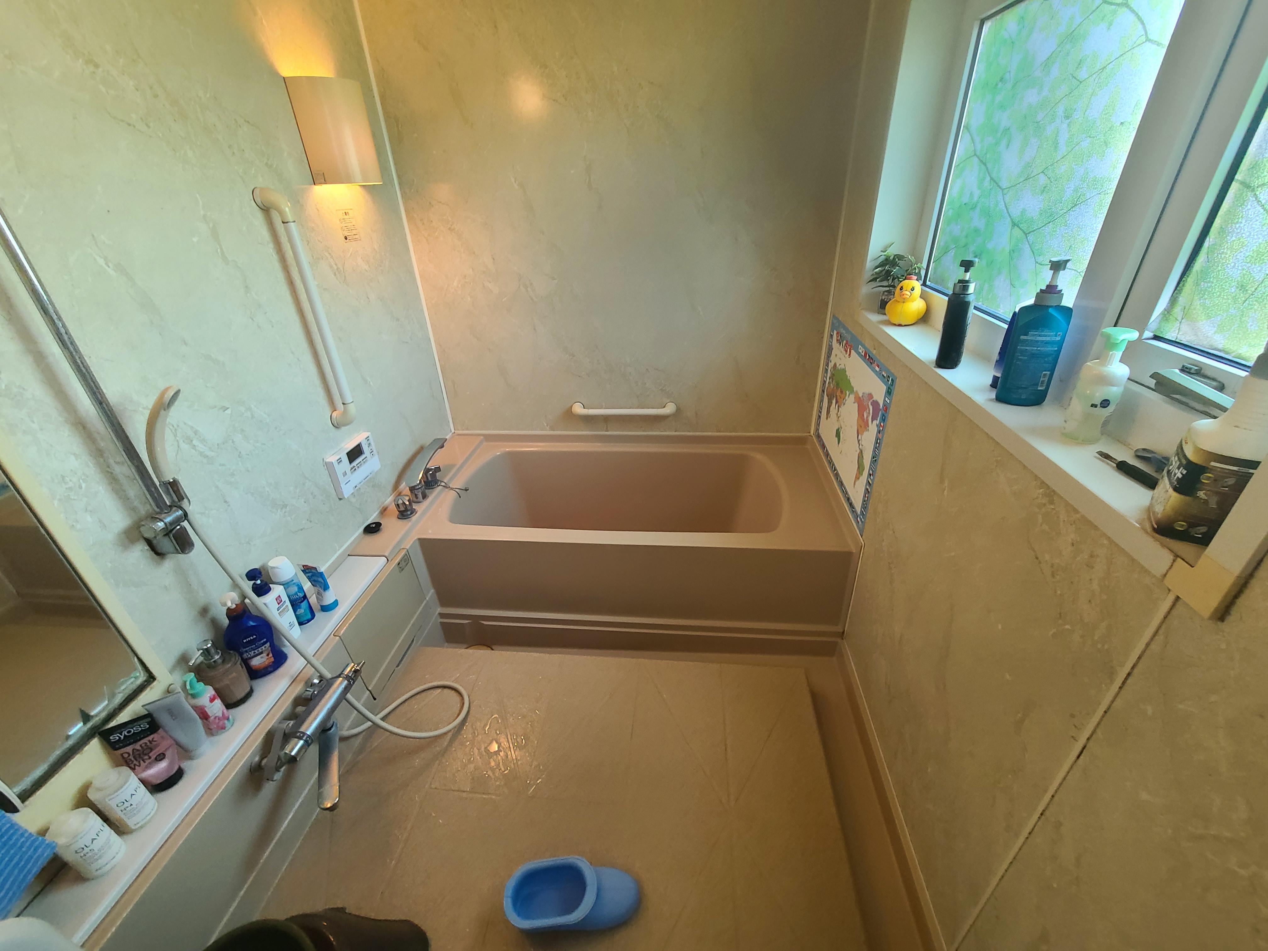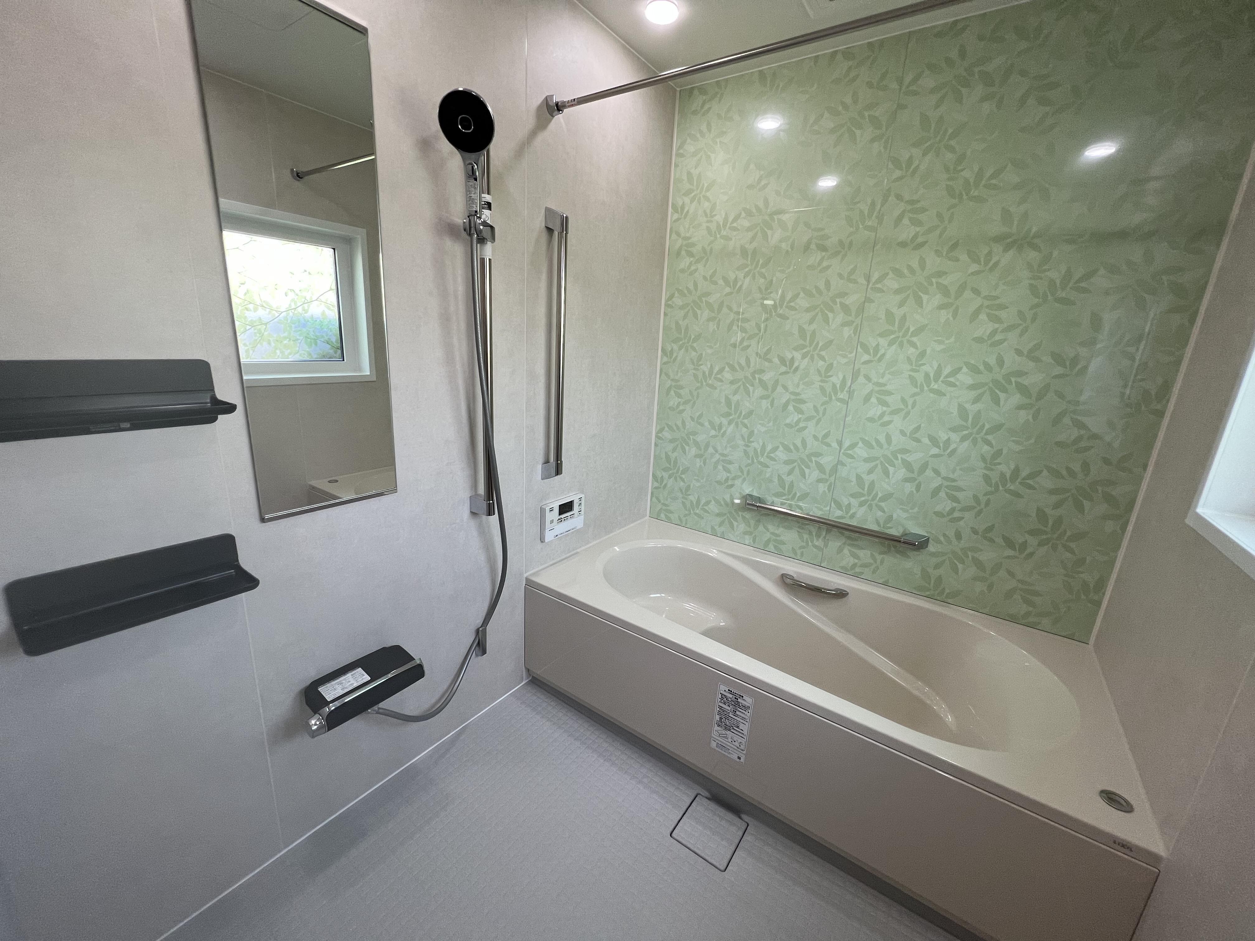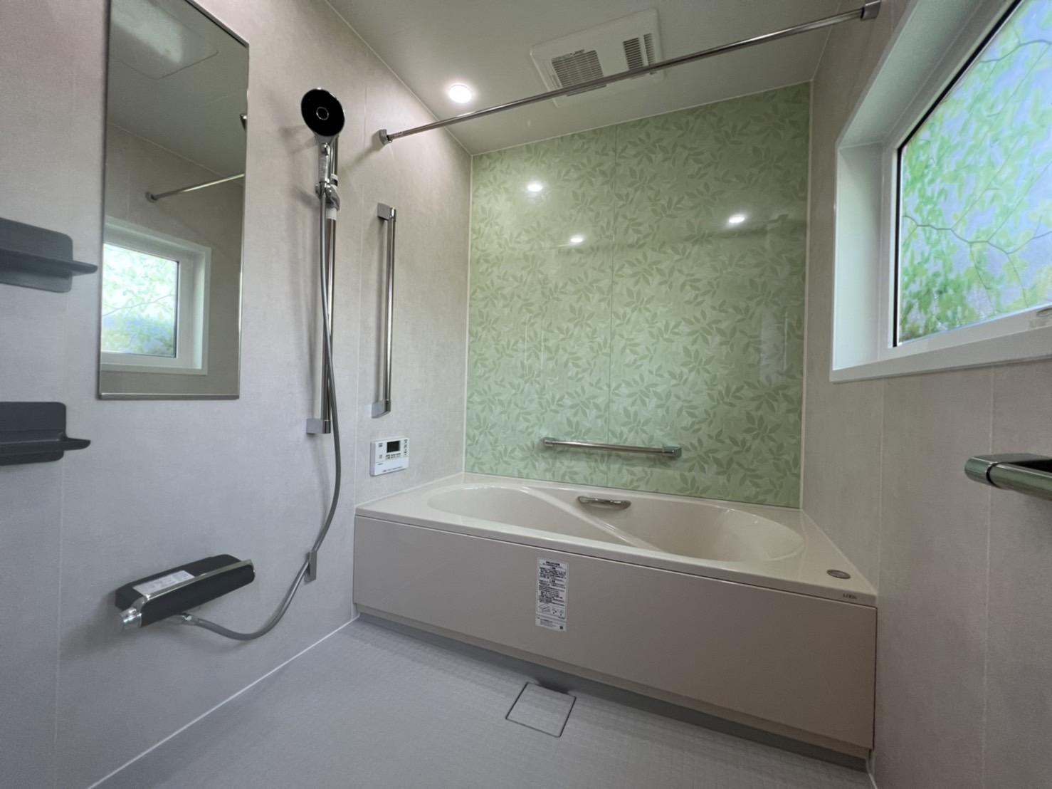 どんなに擦っても落ちなくなってしまった汚れ! 浴室内にある排水の溝が危険で浴槽内を狭く使いにくく。。。 新しいお風呂に交換したいとご相談をお受けいたしました。 汚れにくく、バリアフリーで安全に暖かく 奥様の好きなグリーンのパネルにピッタリのコーディネイトに仕上がりました。