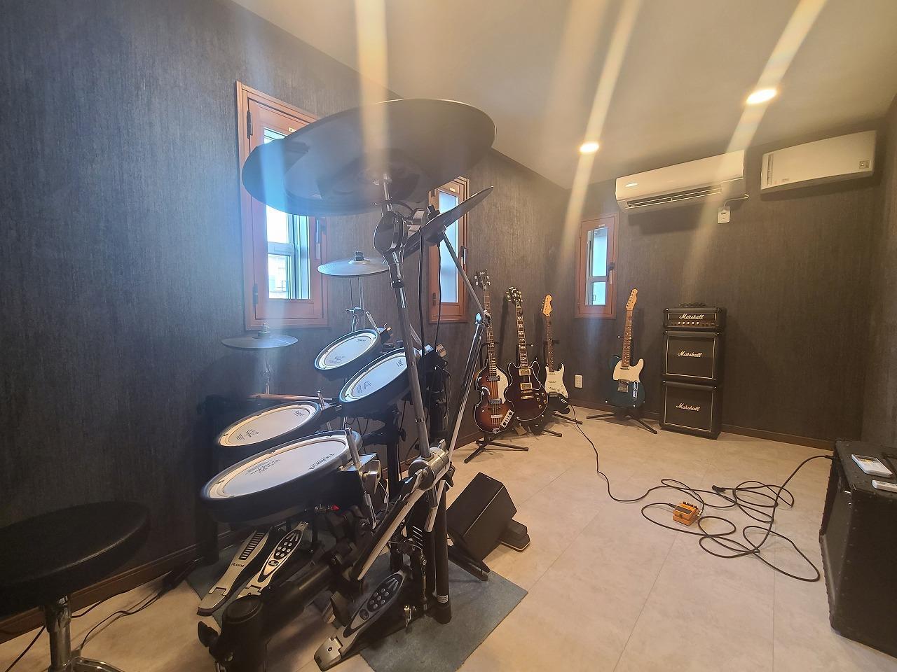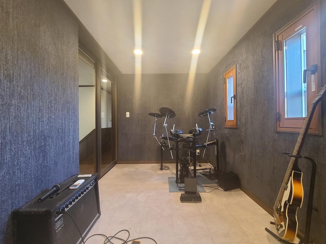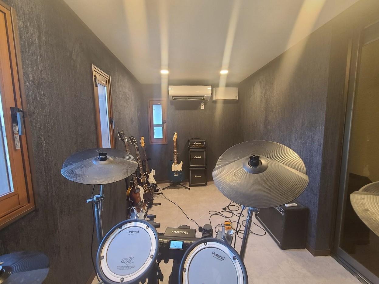 昭和町で未活用のバルコニースペースを防音部屋へとする改修工事。RCの住宅は楽器の音が反響してしまい、趣味のギターも控えていた日々。若い時代に本格的に取り組んでいた音楽活動は思い出だったものの、コロナ禍で家で過ごす時間が増えたこともきっかけとなり自宅に更に充実した空間をつくりたいという思いが実現!