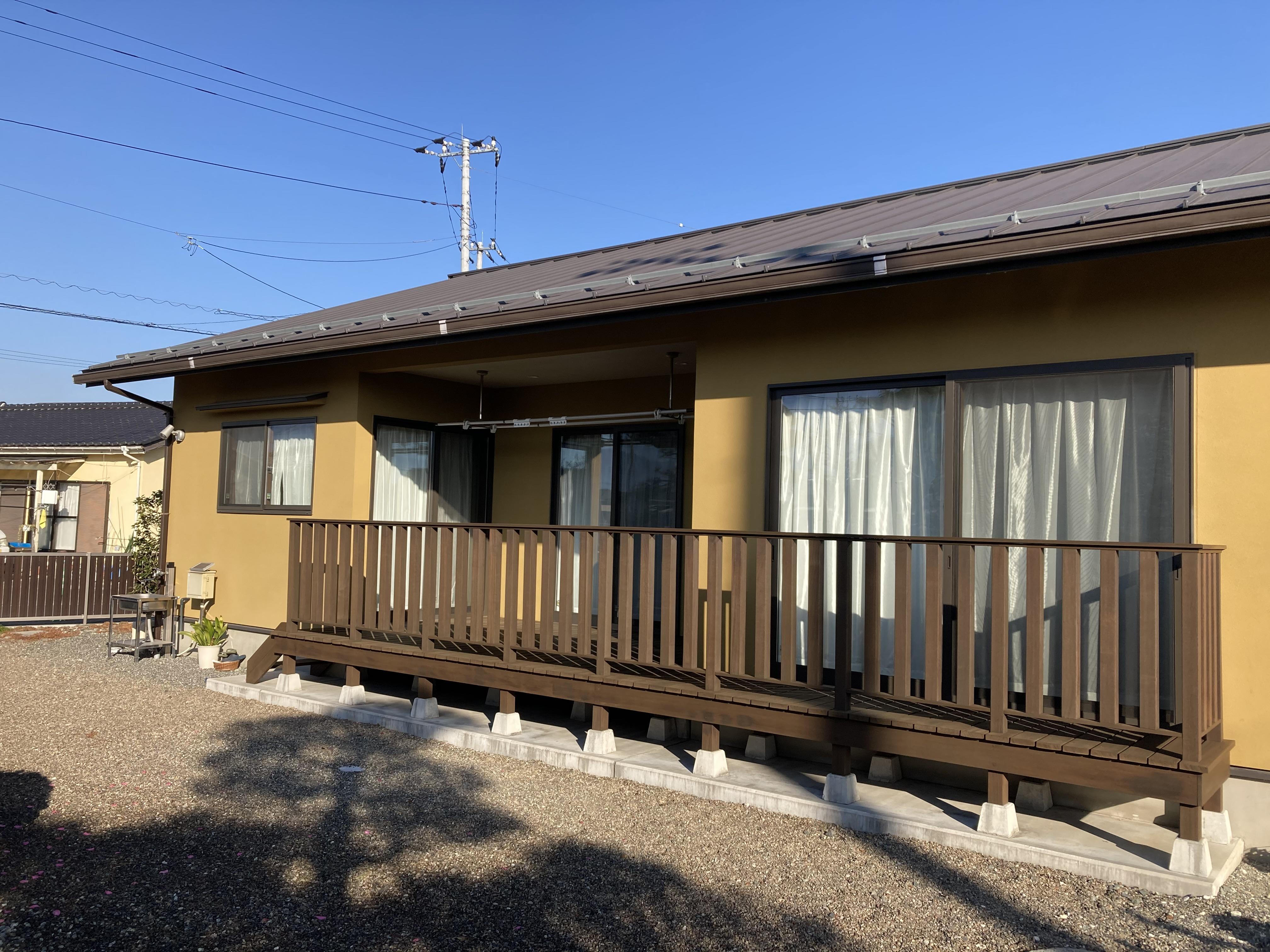 いつ見ても室内外も、お庭もきれいにされており関心させられます。木材のデッキも まだ少し早いと思いましたが、塗装をし直す事で木材の劣化防止にもなります。 お天気にも恵まて早く完成してよかったですし、さらに外観が生まれ変わりました。