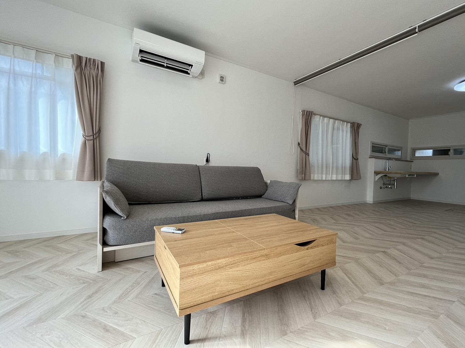 甲斐市にてデザインリノベーションしました。客間だったお部屋を有効活用できるように下地から内装まで一新しました。床には断熱材を新しく入れ、開口部にはLIXILの内窓「インプラス」を設置して冬でも暖かく過ごせるようになりました。加熱器具を使わなくなったミニキッチンは、カウンターの広い洗面台に交換しました。お部屋はナチュラルウッドに統一され、明るくきれいに仕上がりました。