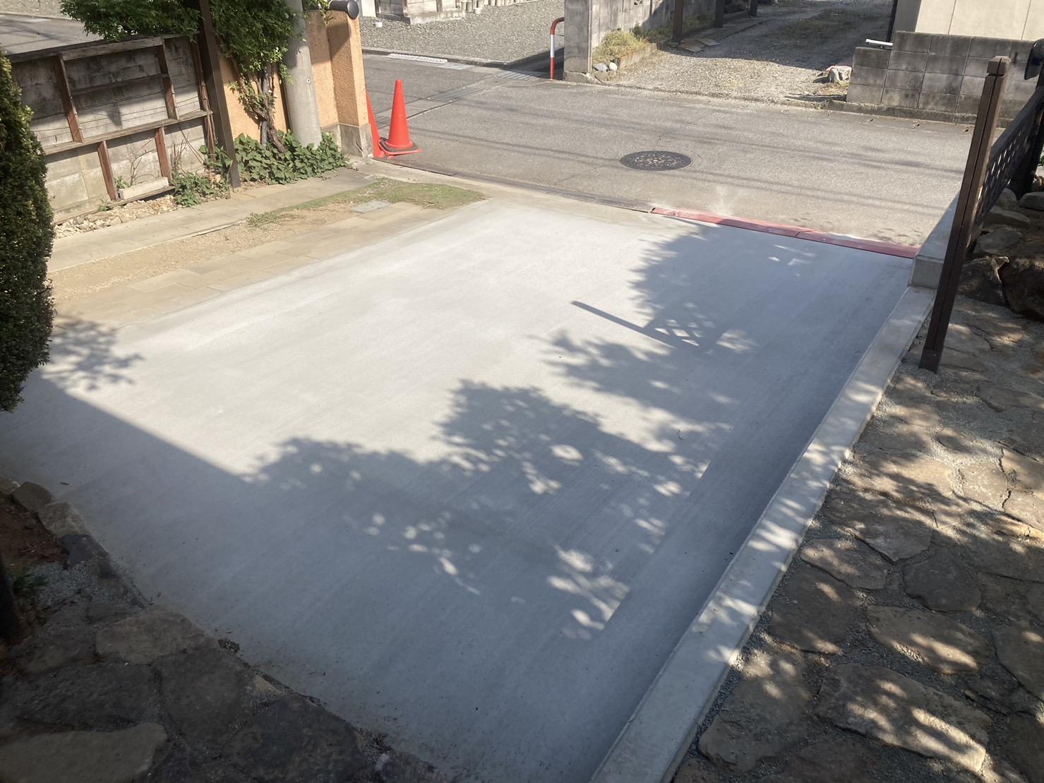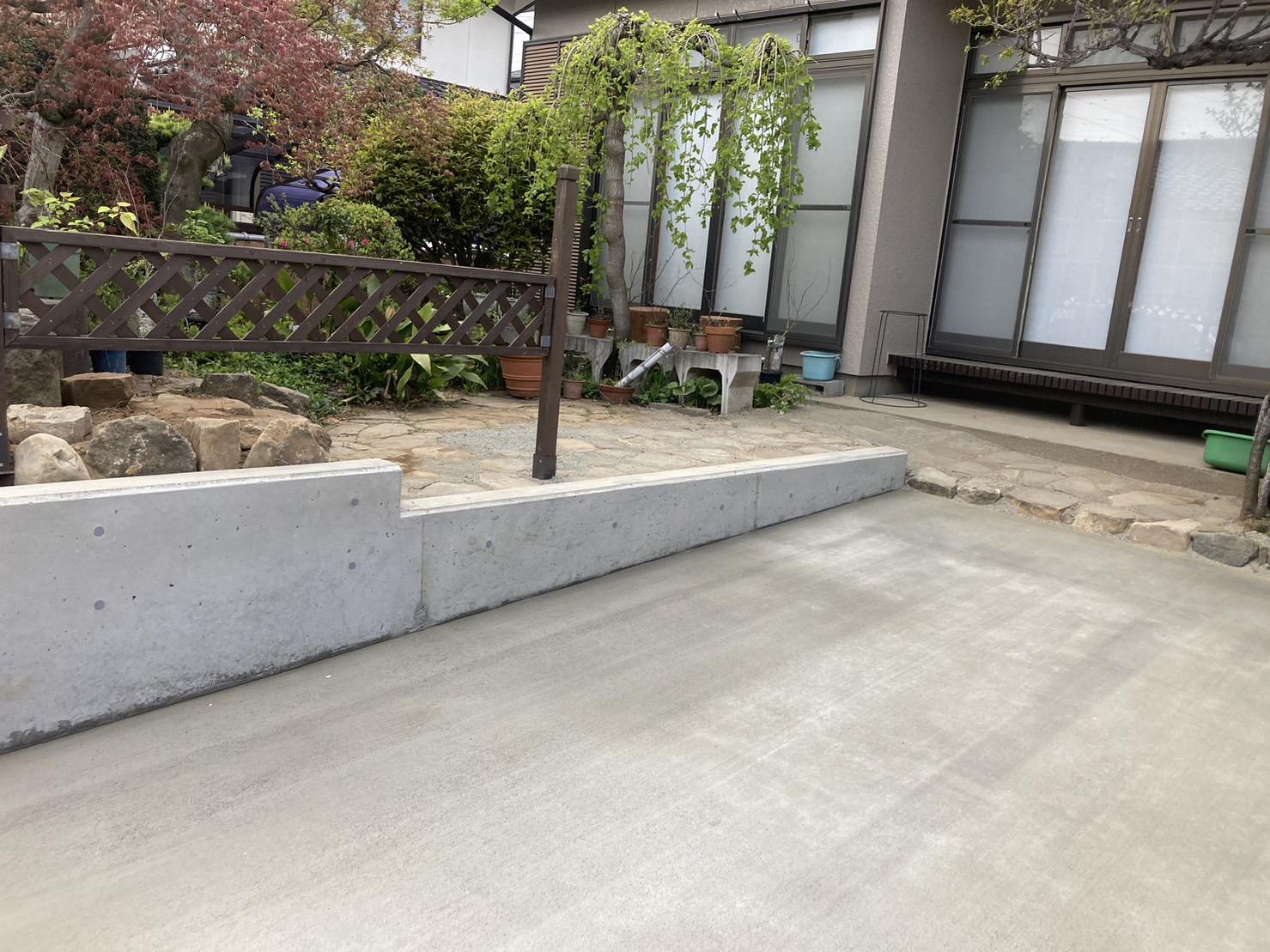 既存のお庭を大変気に入っておられ、植木や植栽を大切にしていましたので、なるべく完成イメージを想像できるように何度も打合せをしました。 かなり見晴らしは良くなってしまいましたが、車が2台停められ便利になりました。新しい石畳も気に入って頂く事ができました。