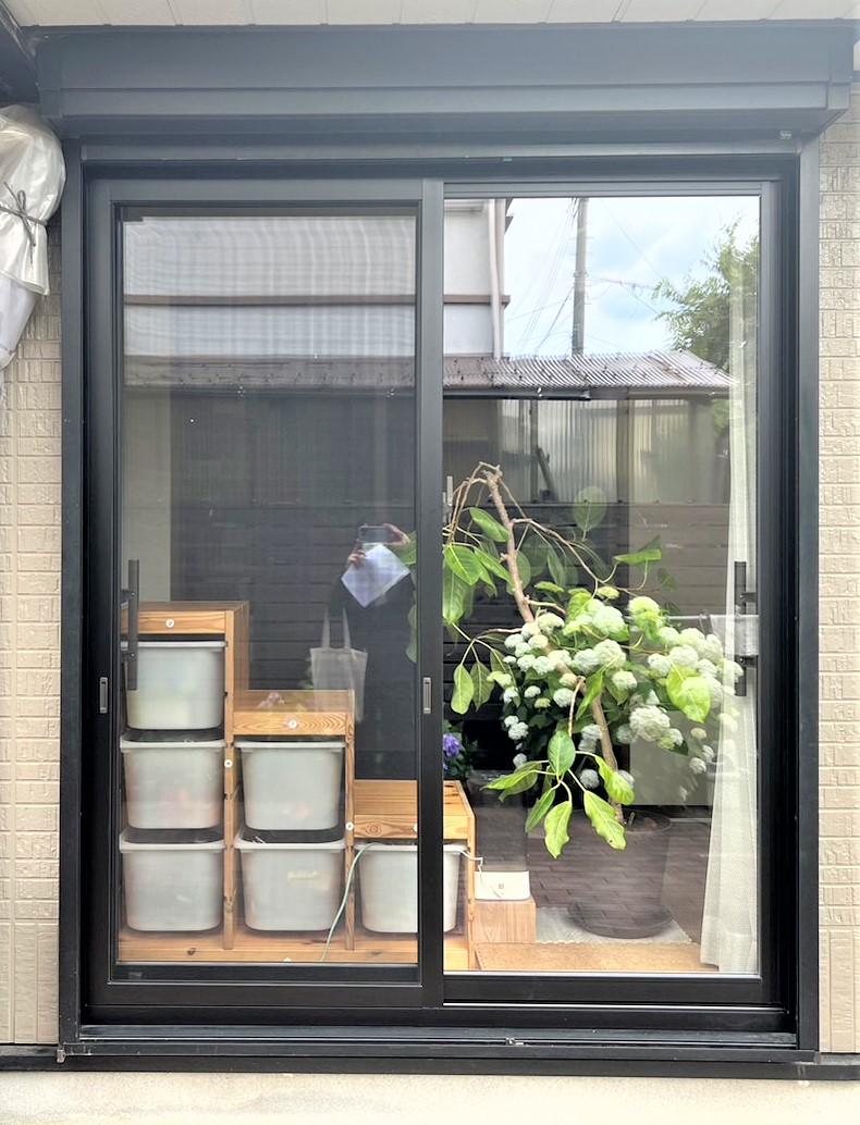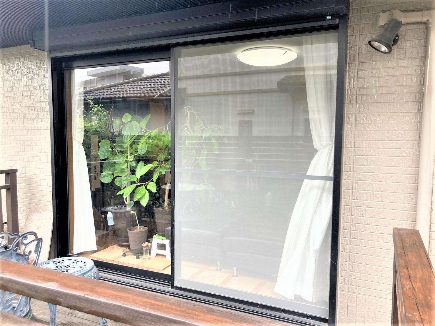 既存のシャッターもそのまま、既存サッシとも違和感なく、網戸もしっかりしているのに中桟がなく、とても解放感を感じ気持ちが良いです(^^)