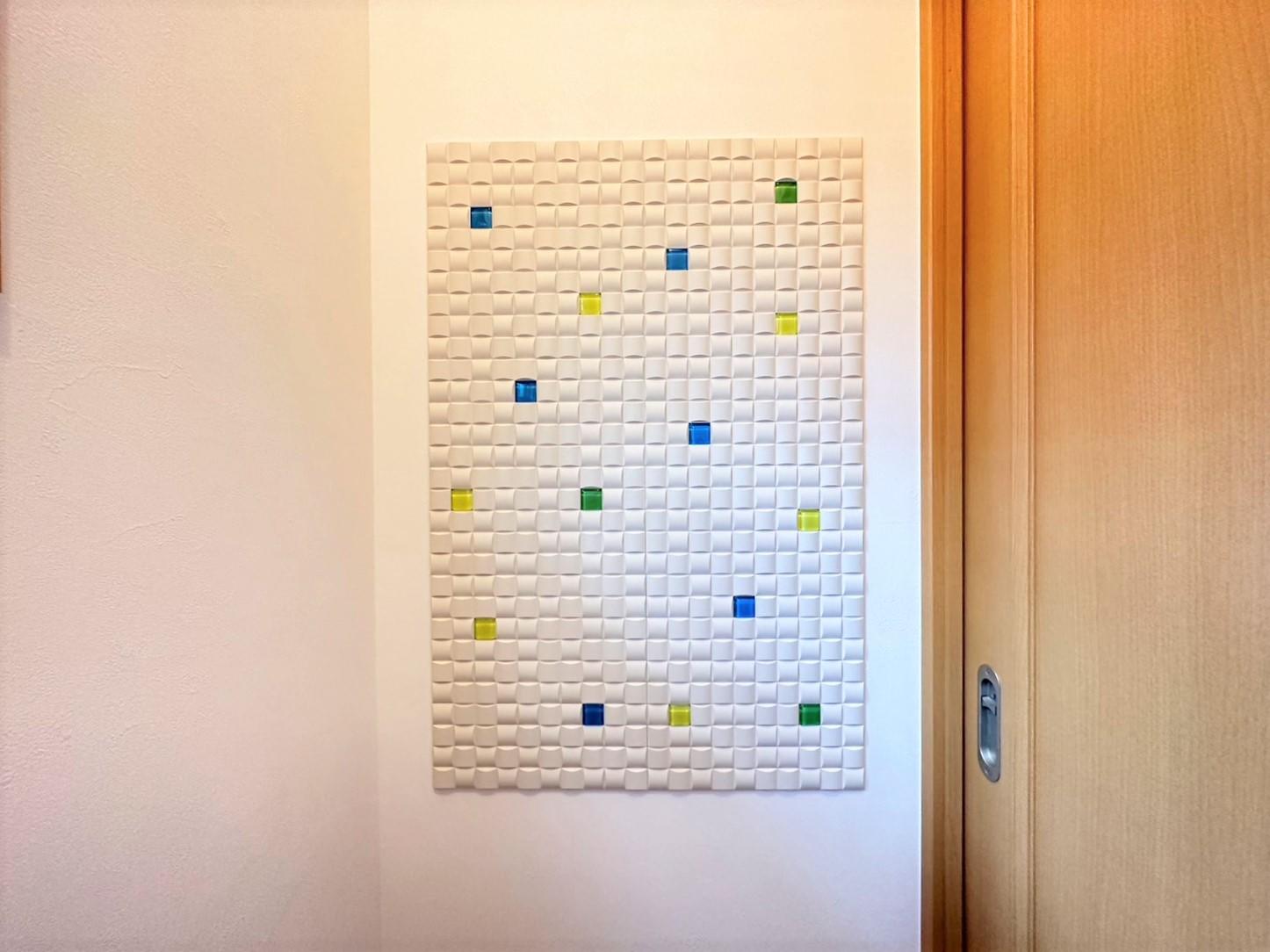 こちらのお客様は、猫ちゃん達の引っかき傷で壁がボロボロにならない素材のご相談でご来店されました。奥様がエコカラットを大変気に入られ、家中に貼らせていただきました。そのほかクロスの貼替と床の上貼りも工事させていただき、とてもステキな雰囲気に仕上がりました。