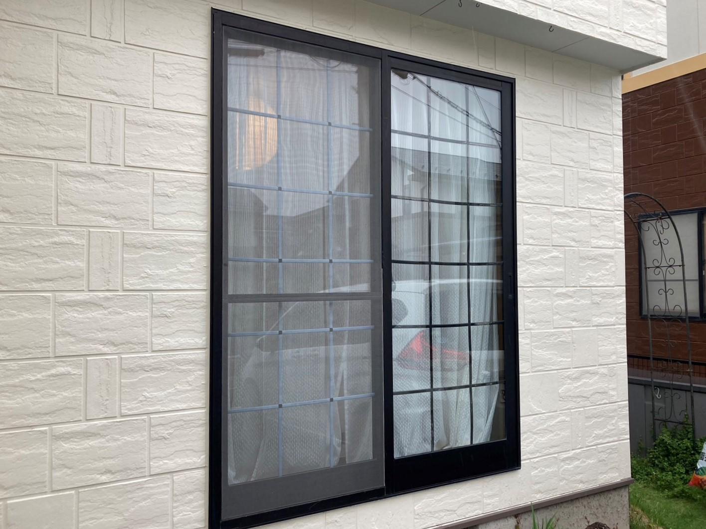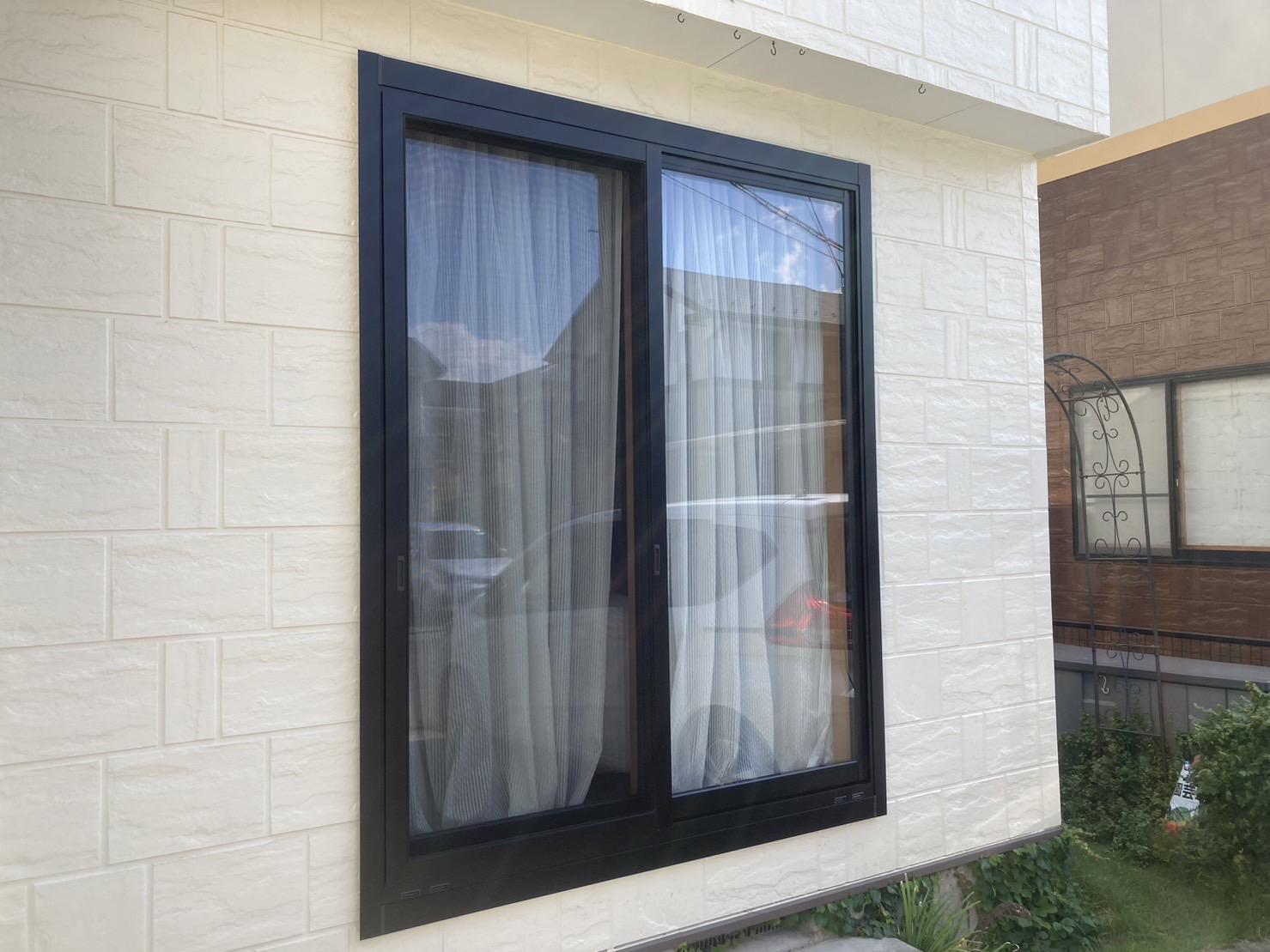 玄関は片袖親子扉、勝手口は外観ブラック色内観は木目調樹脂YKKのドアリモ!!サッシはリクシルのリプラス高断熱枠!!すべてカバー工法です。