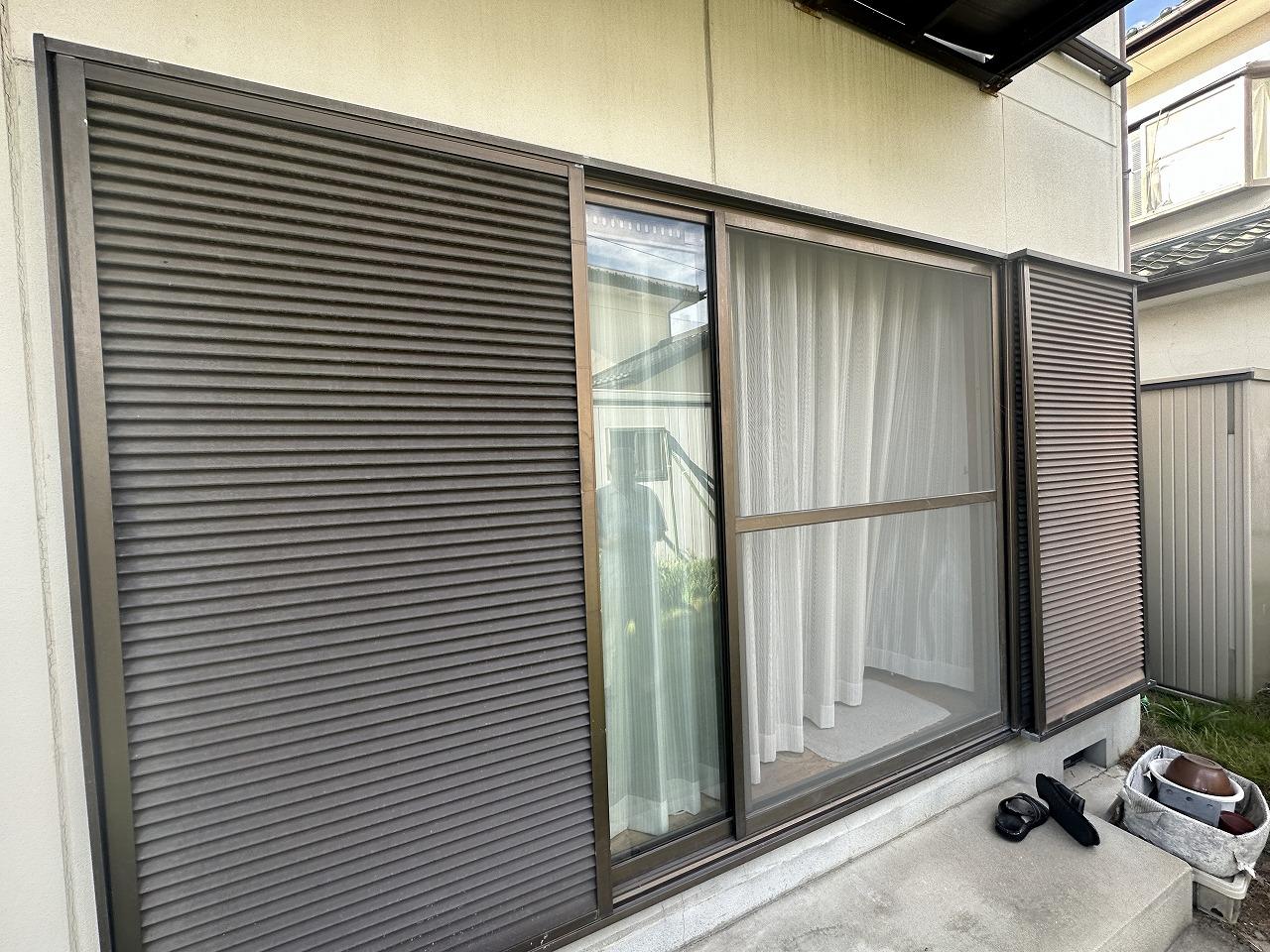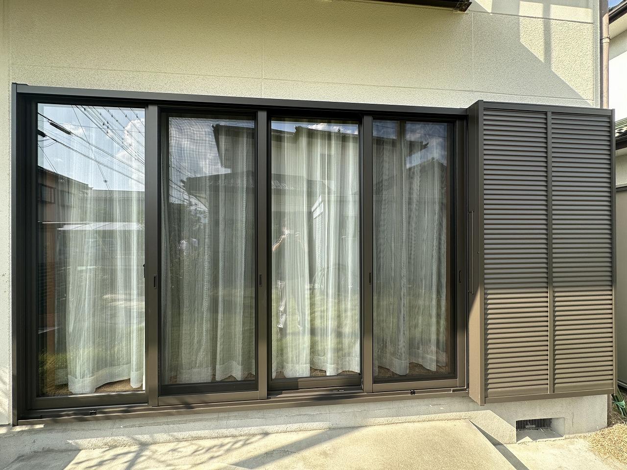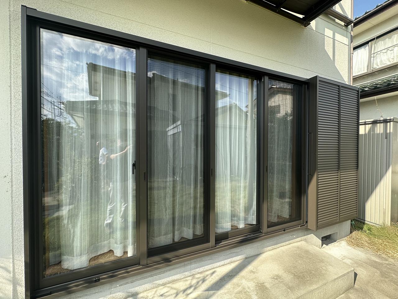 昭和町で雨戸サッシの取替工事が完了しました。270cmの2枚建てサッシの老朽化に伴いとても重たくなりサッシの枠自体に歪みが出て来てしまった為、新しく4枚建ての断熱サッシに交換しました!
