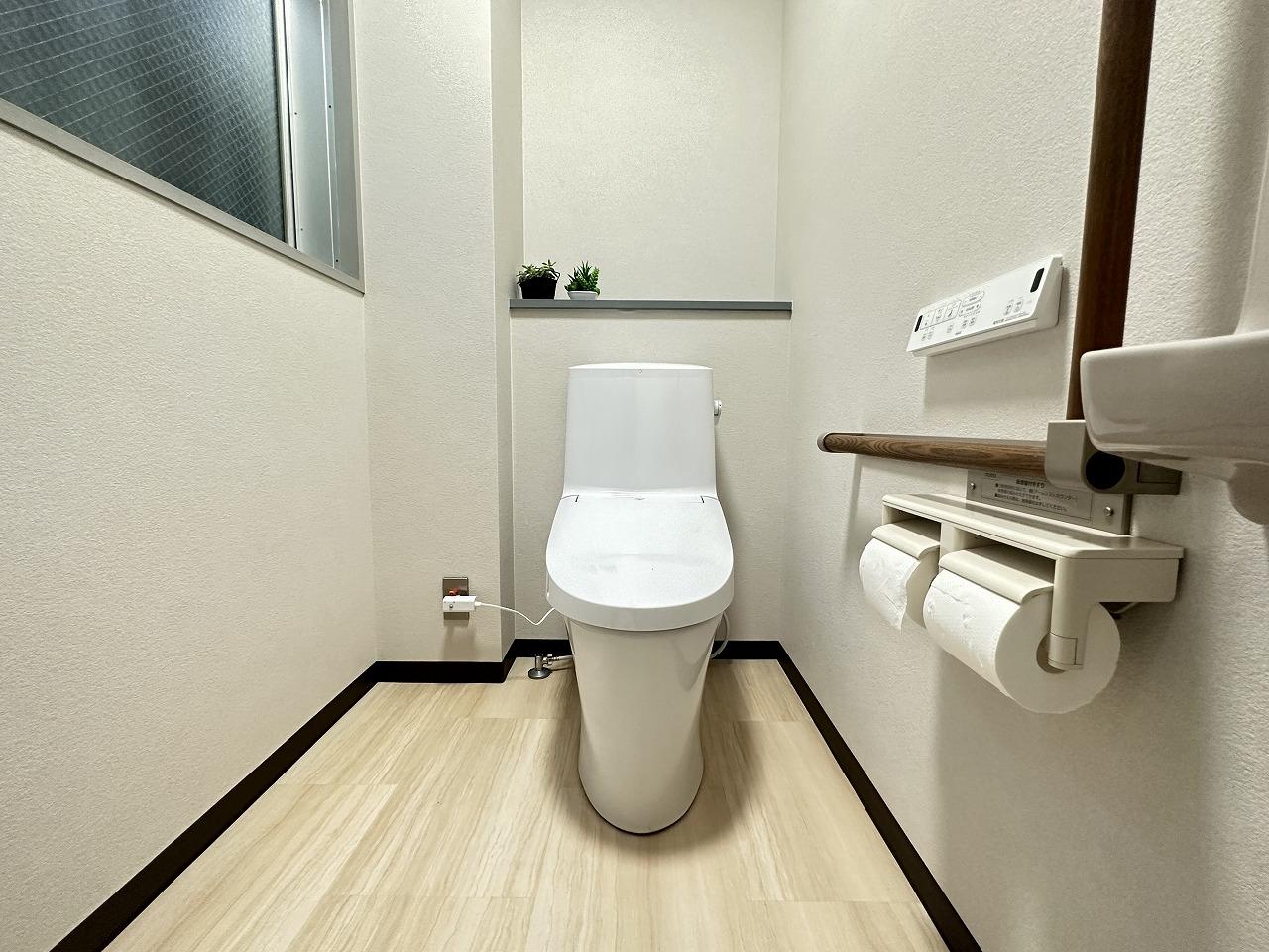 女子トイレと男子トイレを合わせて工事をし、リクシル『アメージュシャワートイレ』を採用しました。