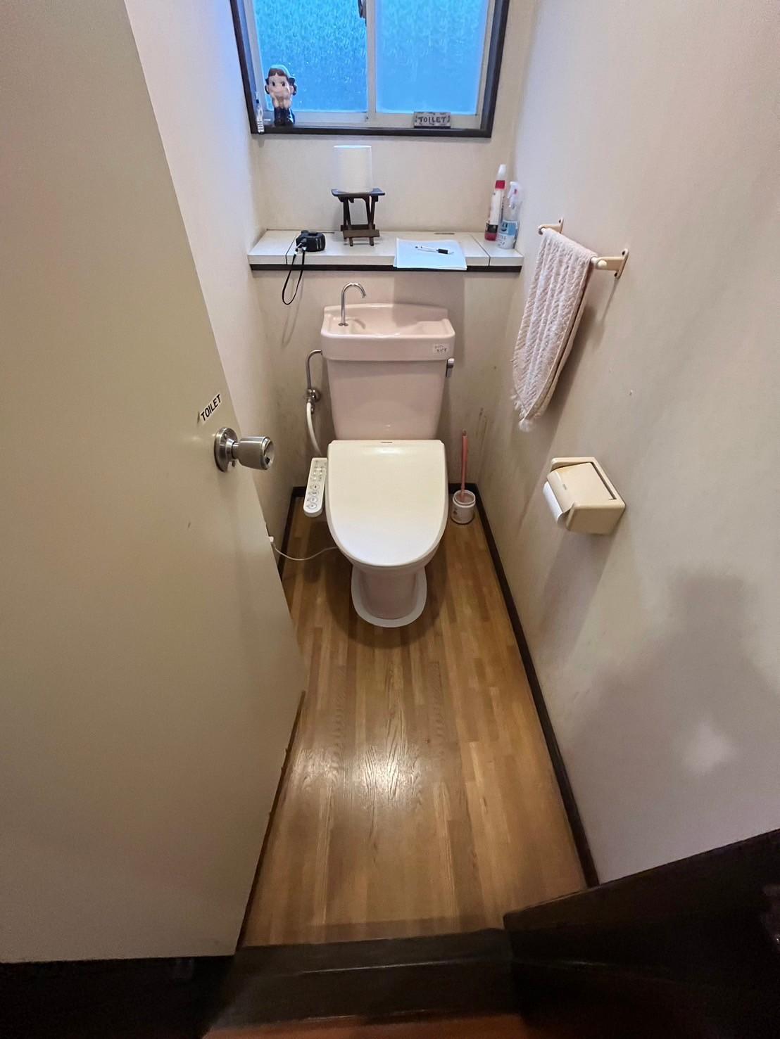 将来の事を見据えてトイレの段差をなくし、ドアから引戸に交換しました。合わせてトイレもLIXILのアメージュ便器に交換しました。