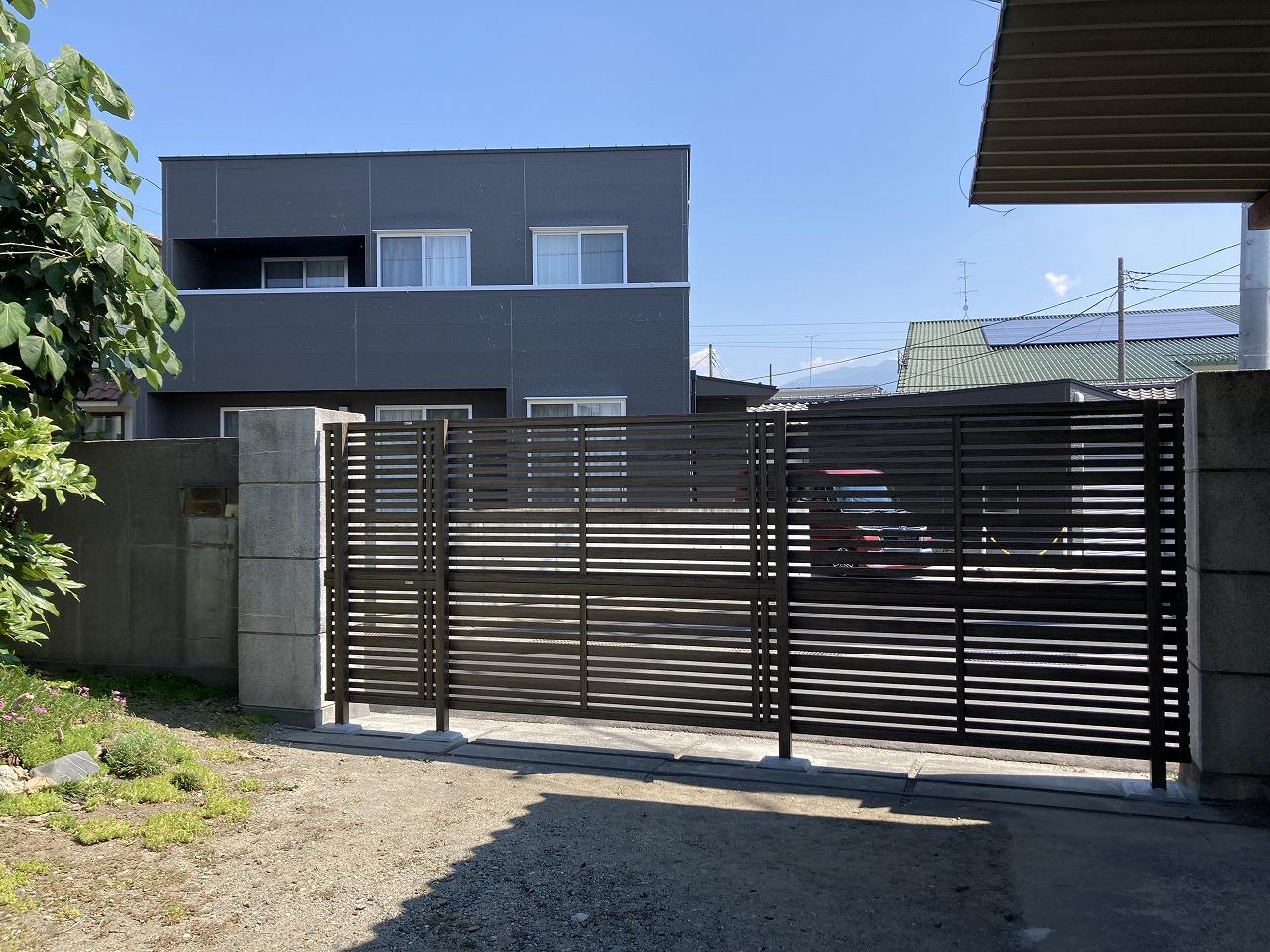 以前から気になっていた、門扉の取替を依頼をされました。もうこちらの出入口は使っていないので開け閉めはされないため、LIXILのフェンスからをお選びいただきました。