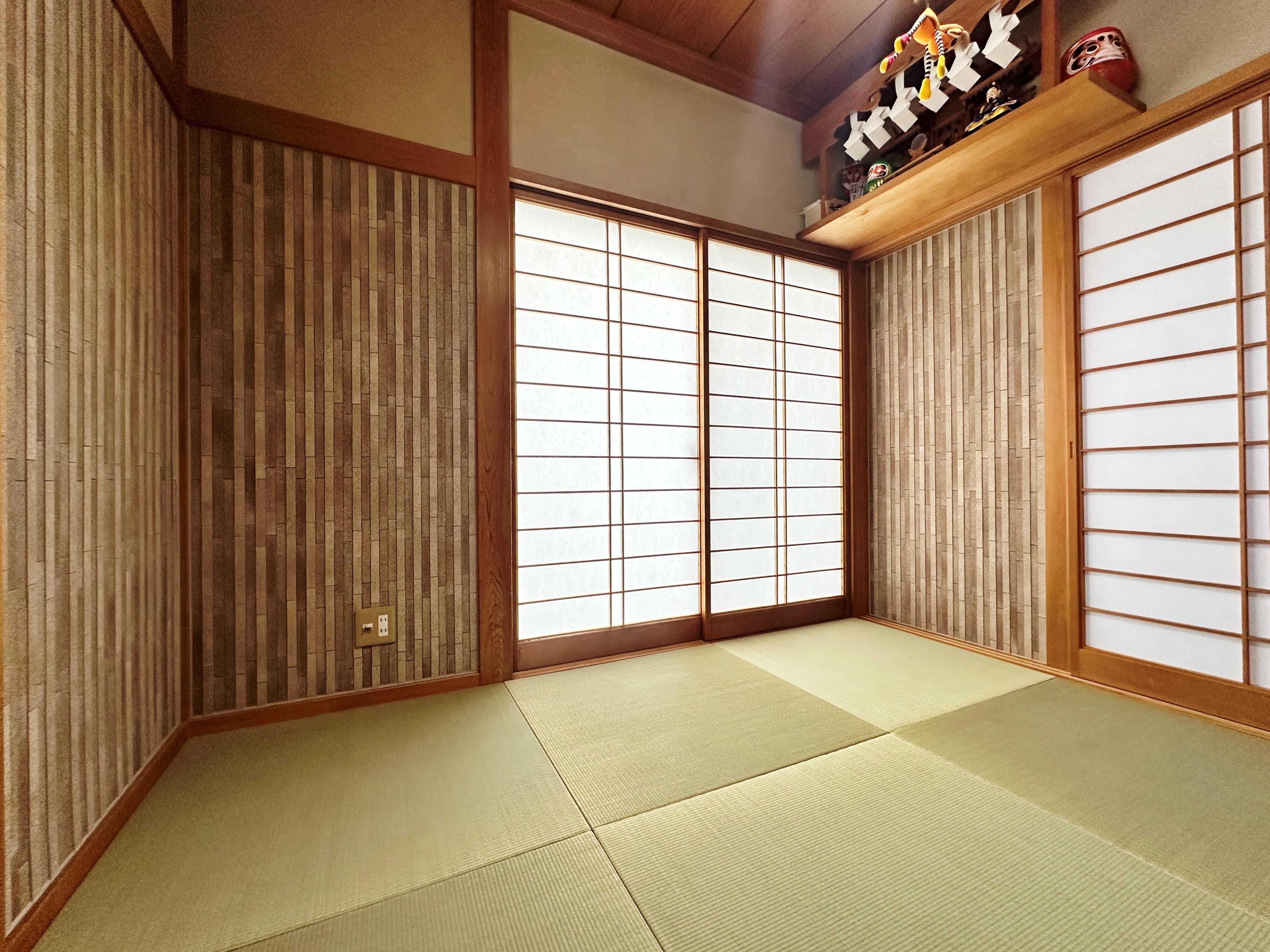和室には調湿、消臭の効果のある珪藻土とエコカラットを使用しました。