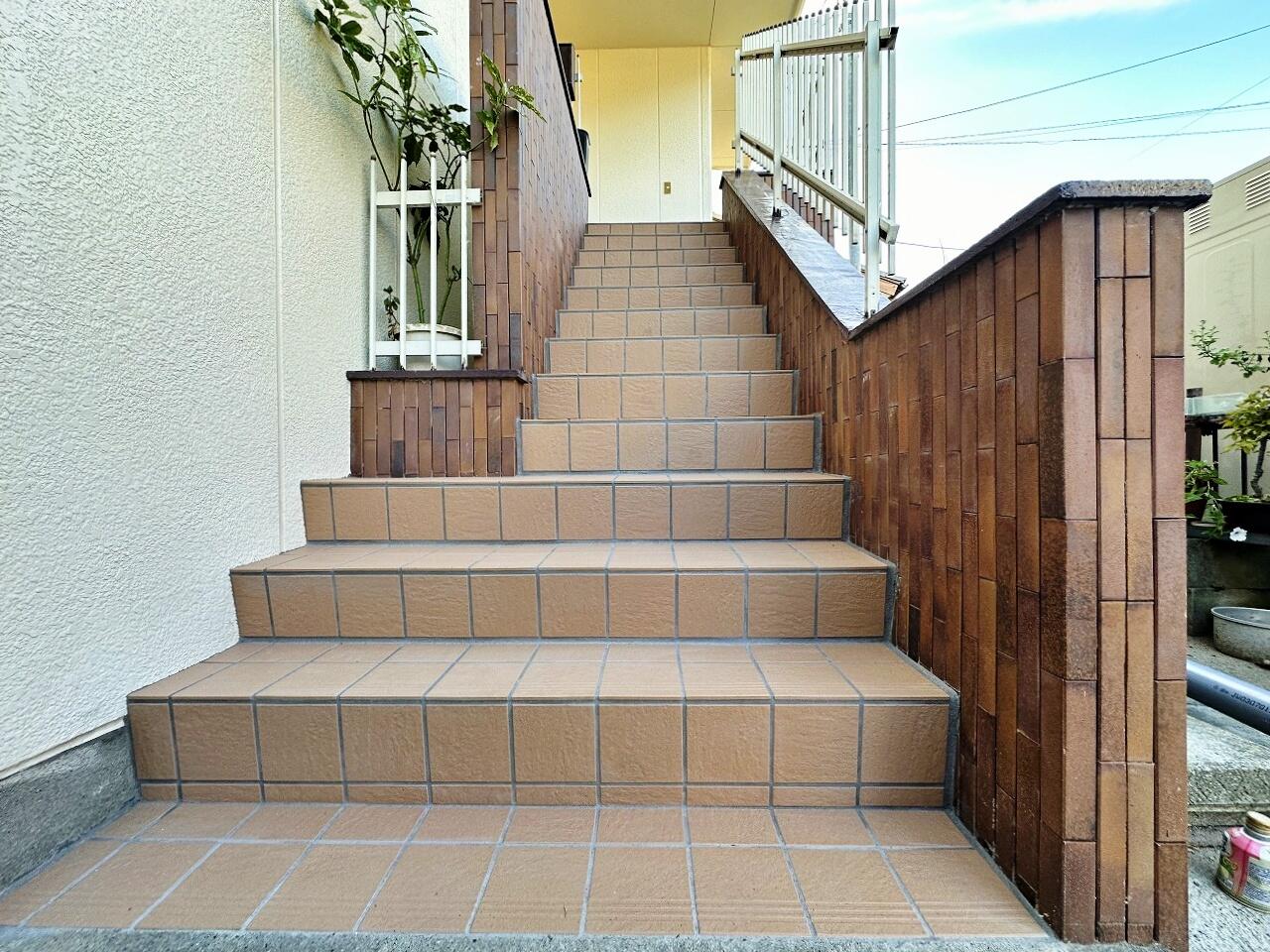また外階段のタイルが老朽化で所々剝れて来てしまったので、150角タイルでリフレッシュしました!