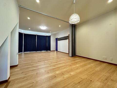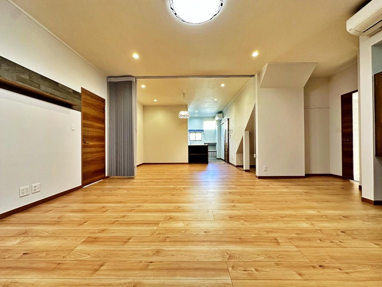 1階部分だけで36坪程ああり、子供さんも皆さん独立されて、これから先はご夫婦2人での理想の間取りで生活していきたいと、リノベーションを決意。近くに住む娘さんやお孫さん、その他にも来客が多い施主様の為に、間取りの真ん中辺りに南から北まで目一杯大きさのLDKを配置しました。またLDKを挟んで両側に夫婦それぞれの寝室を配置し、プライバシーもしっかり確保出来るようになりました。