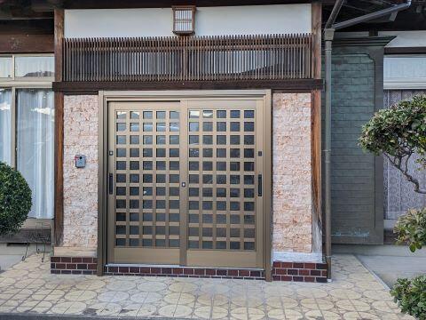 山梨県 南アルプス市I様邸の玄関引戸のリフォーム工事が完成しました。 防犯性能もUPしスムーズに動くようになりました。