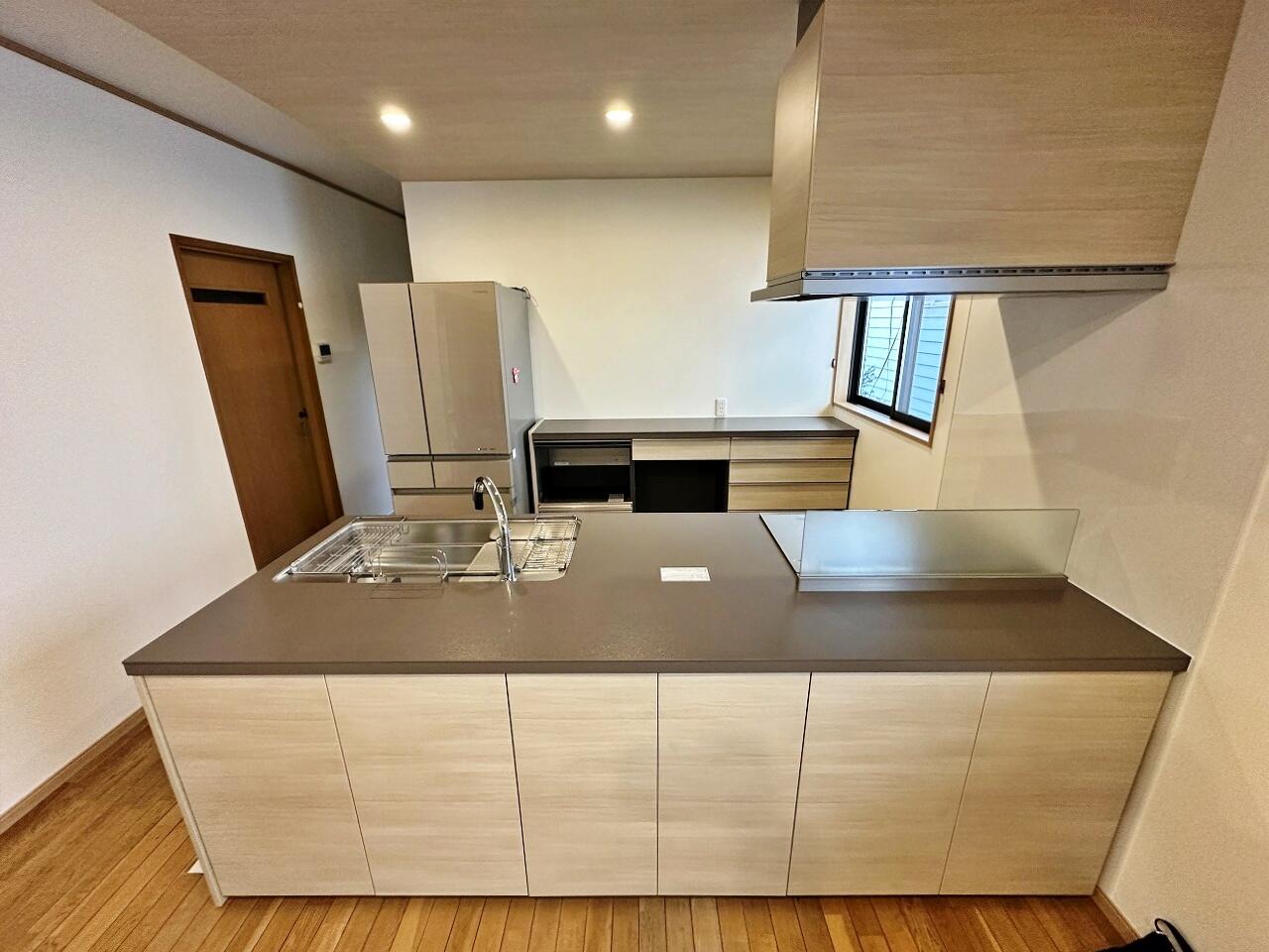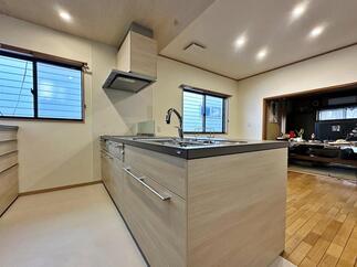 オープン対面キッチンのペニンシュラタイプで2人でお料理しても広々使えます。