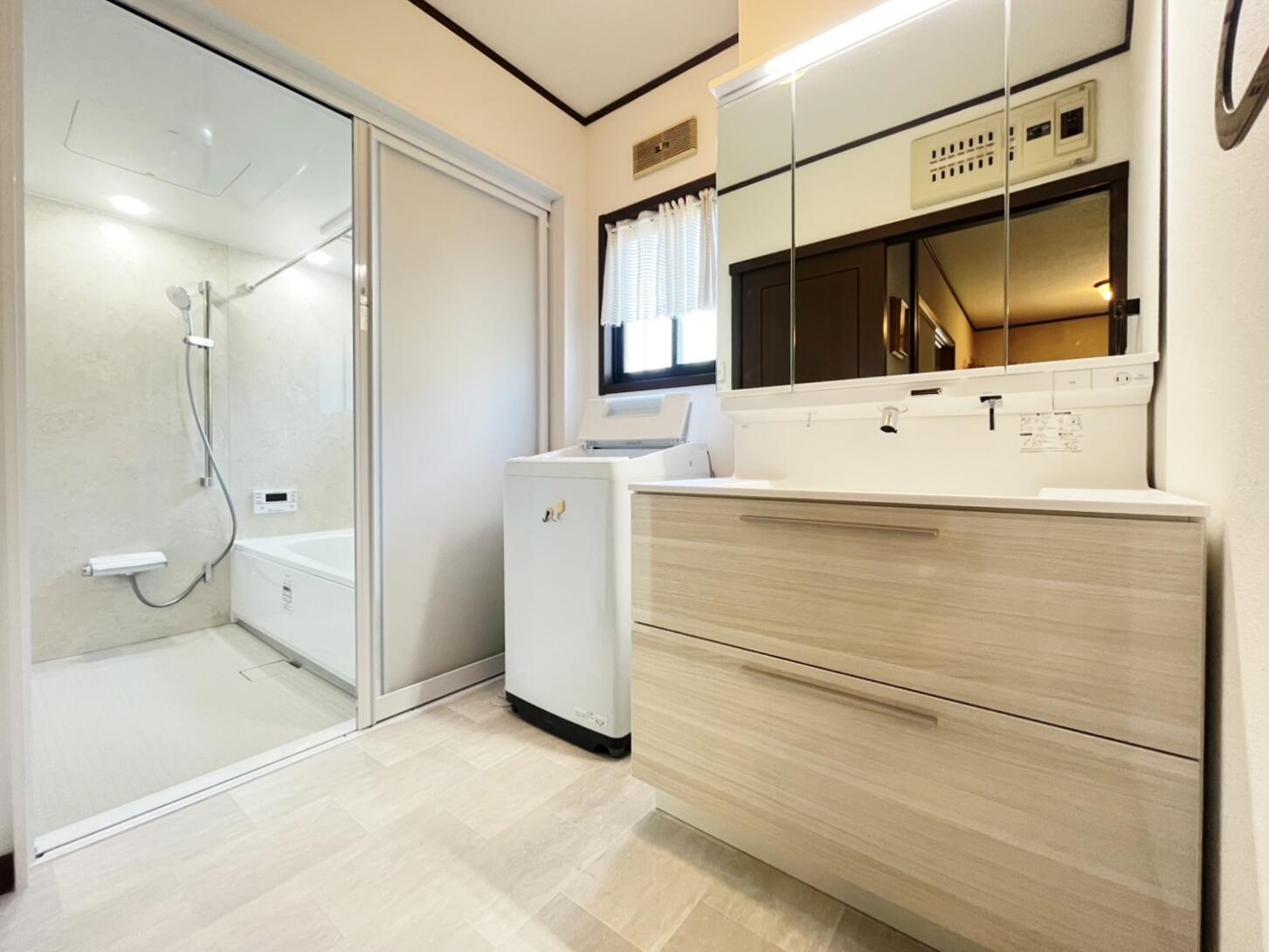 リフォームした浴室と洗面脱衣室が新築のように明るく綺麗になりました。暑い中工事ありがとうございました。