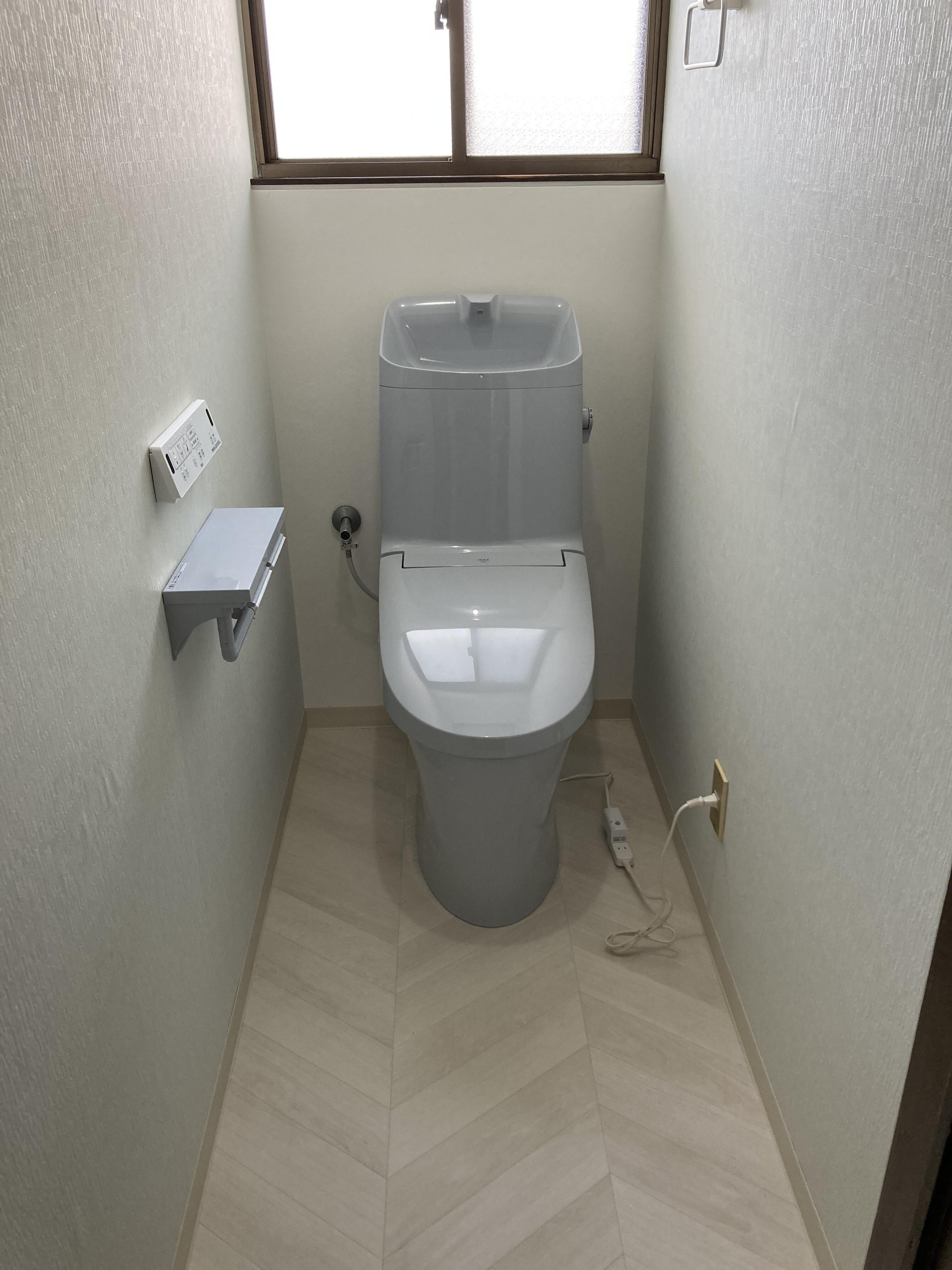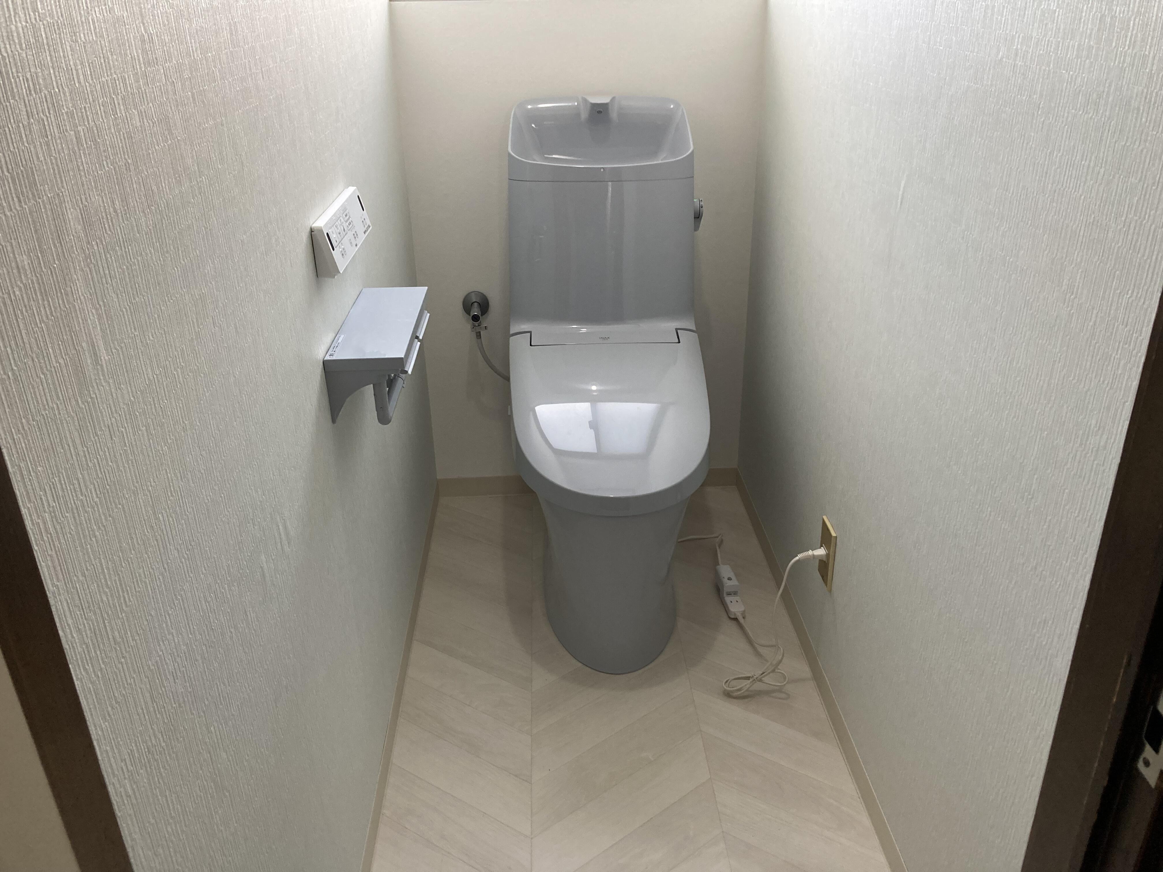 トイレは、LIXILアメージュシャワートイレ(リトイレ)ブルーグレー色へお取替えしました。