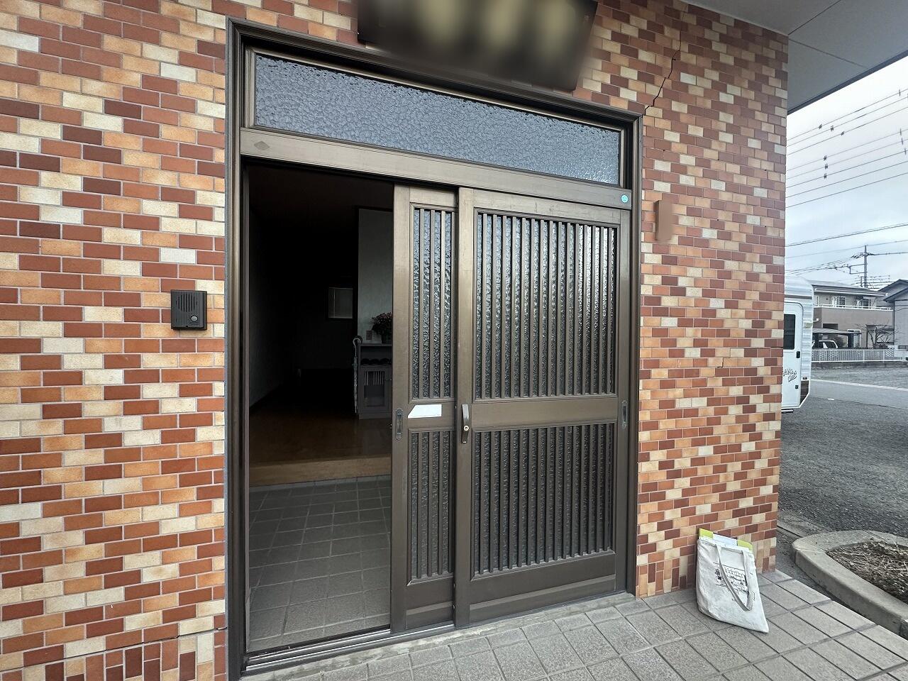 中央市でリフォーム工事をさせていただきました。使用していた玄関引き戸は、地盤の影響もあり少しずつ下がってしまい、引き戸の開け閉めがしづらくなってしまっていました。今回は、LIXILリシェント玄関引き戸を使用しました。